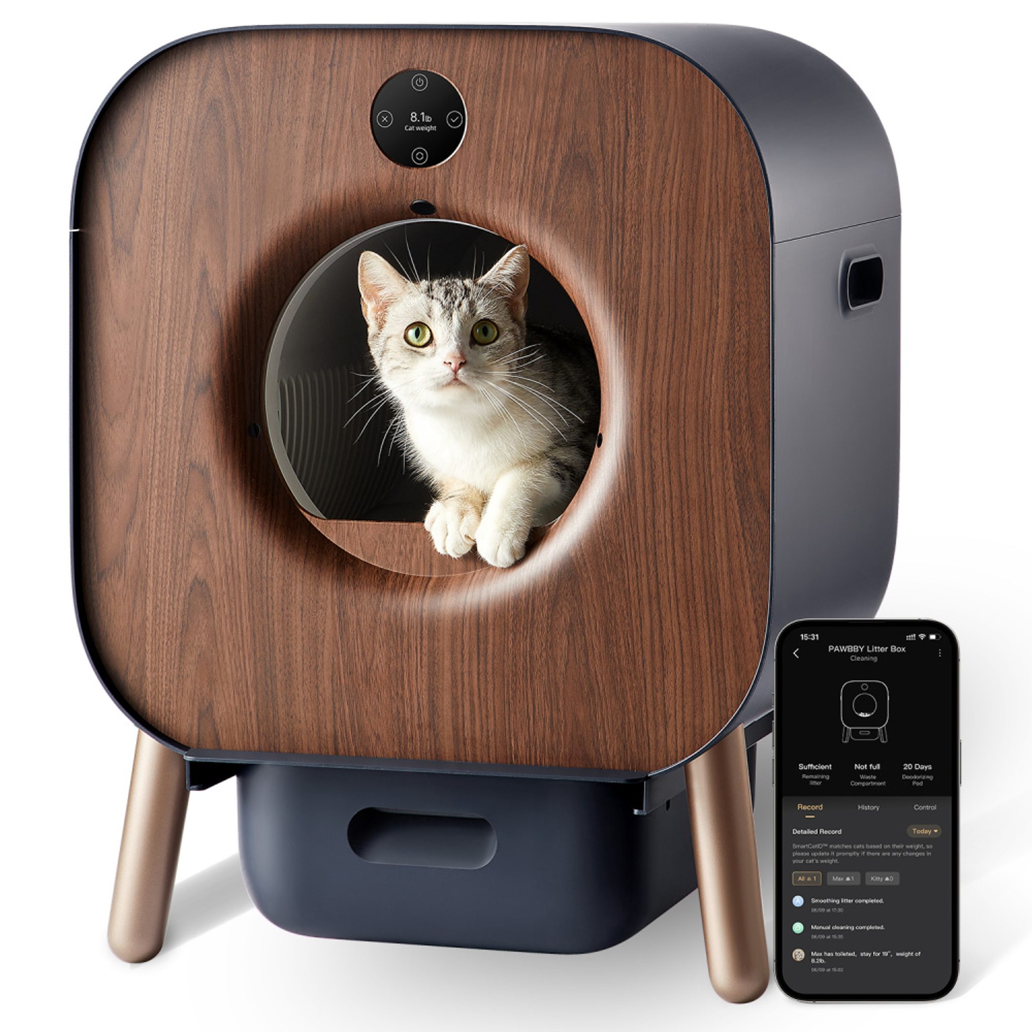 Díky precizním senzorům hmotnosti je zajištěno, že čistící cyklus se aktivuje pouze tehdy, když je kočka mimo záchod. Senzory také pomáhají monitorovat zdraví vašeho mazlíčka tím, že sledují frekvenci jeho návštěv záchodu.
