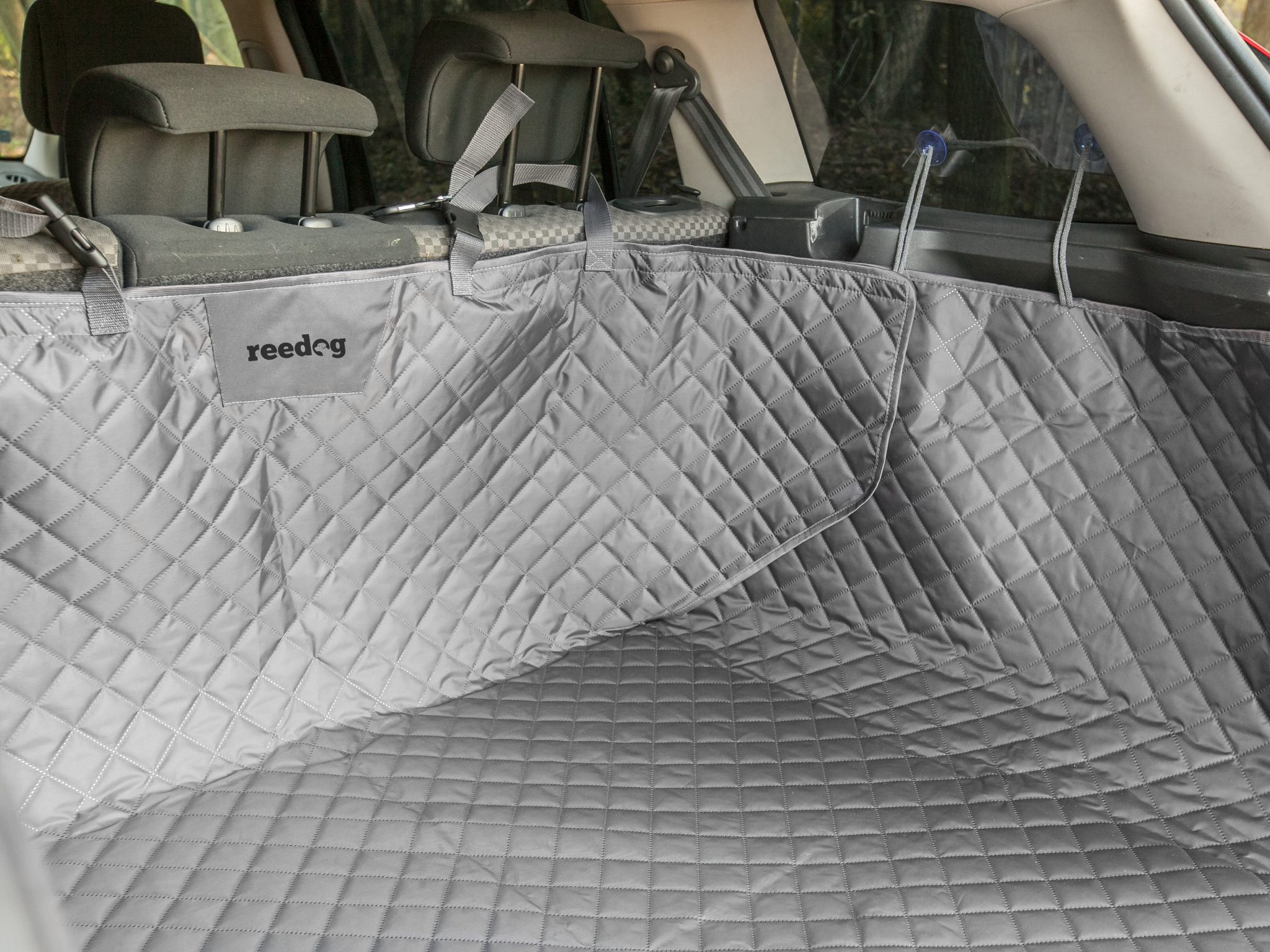 Reedog autopotah do kufru pro psy je vyroben z kvalitní látky cordury, takže se na něj chloupky nebudou lepit a lze ho snadno i otřít, nebo vyprat v pračce. Potah je velmi praktický, snadno uchytíte na okna auta pomocí přísavek, takže vám bude pevně držet na místě.