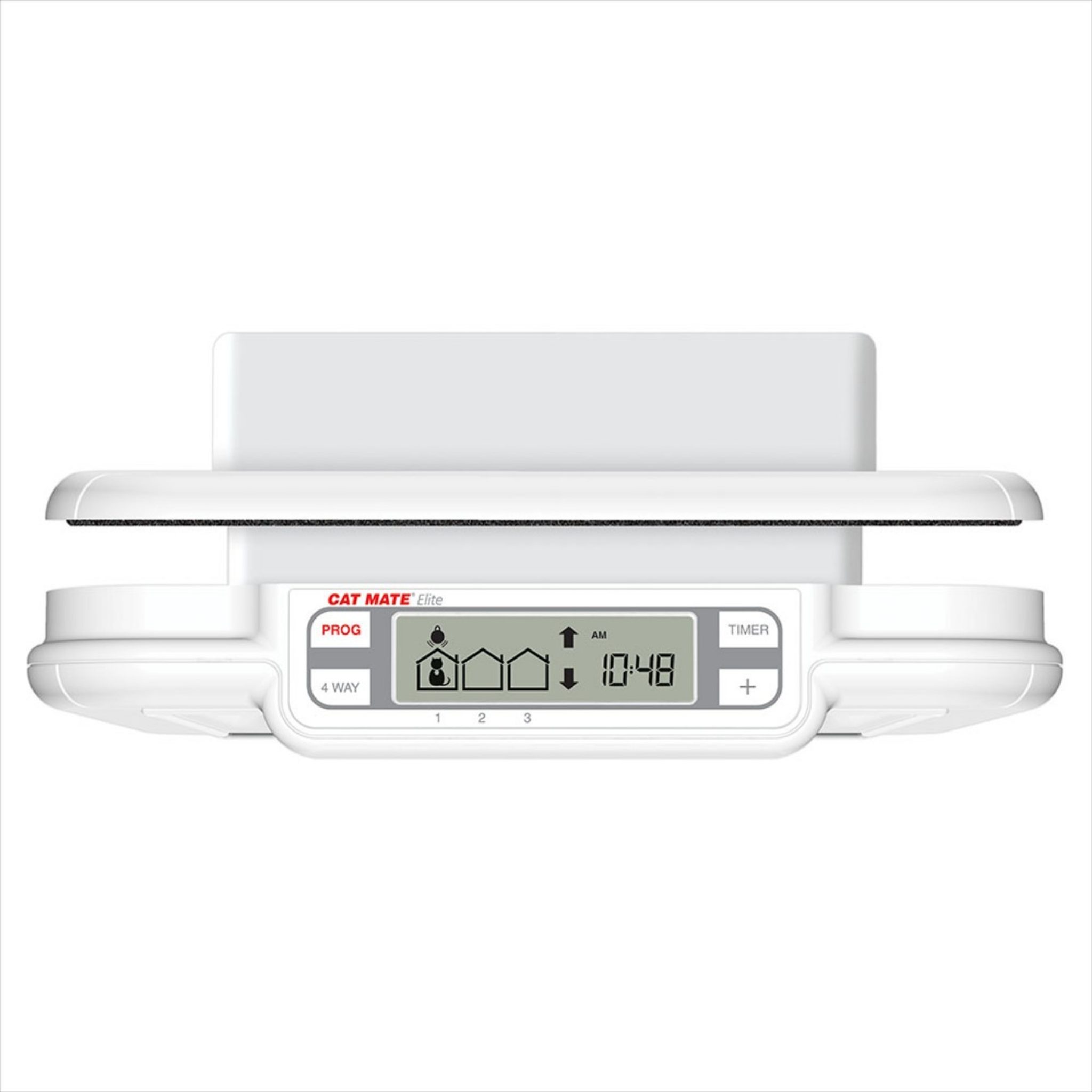 Mikročipová dvířka pro kočky s časovým ovladačem Cat Mate Elite umožňují vstup do vaší nemovitosti až 9 kočkám. Také vám umožňují ovládat výstup všech vašich domácích mazlíčků s použitím časovače nebo 4 směrného zámku. Dále vám umožní monitorovat pohyb až 3 jednotlivých koček – ukazuje, kdy naposledy vaše kočka vstoupila nebo opustila dům a kolik hodin uplynulo od doby, kdy naposledy kočka dvířka použila. Flap dvířek je ozdoben mozaikou tlapek.