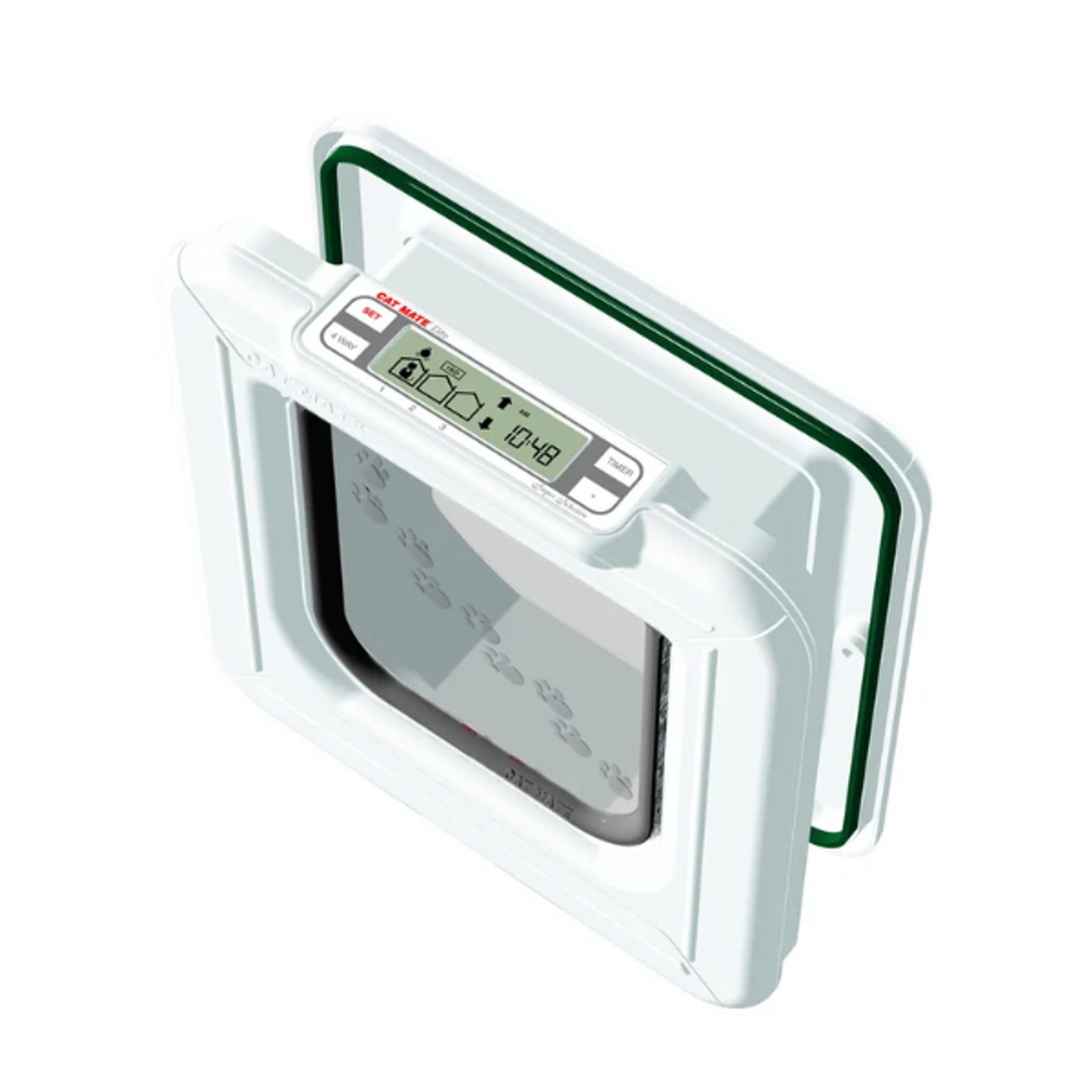 Tato dvířka používají k rozpoznání koček elektronický ID přívěšek připojený k obojku vaší kočky. Dvířka pro kočky se extrémně snadno programují a používají jednoduchý čtyřsměrný uzamykací systém: odemčeno, pouze dovnitř, pouze ven a zamčeno. Kromě toho je k dispozici inovativní, snadno viditelný LCD displej, který vám umožňuje nastavit konkrétní časy pro příchod a odchod vaší kočky. Panel také zobrazuje indikátory polohy až pro 3 vybrané kočky, takže můžete vidět, zda je vaše kočka právě doma nebo venku. Můžete také vidět, kdy vaše kočka naposledy prošla klapkou. Klapka pro kočky je odolná proti průvanu a povětrnostním vlivům díky stabilnímu, vysoce kvalitnímu polymeru a chlopni utěsněné štětcem. Cat Mate dvířka s mikročipem lze naprogramovat až pro 9 koček a lze je namontovat do dveří o tloušťce až 10 cm.