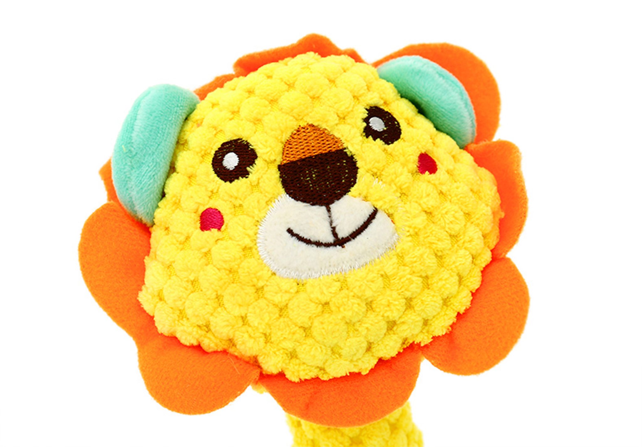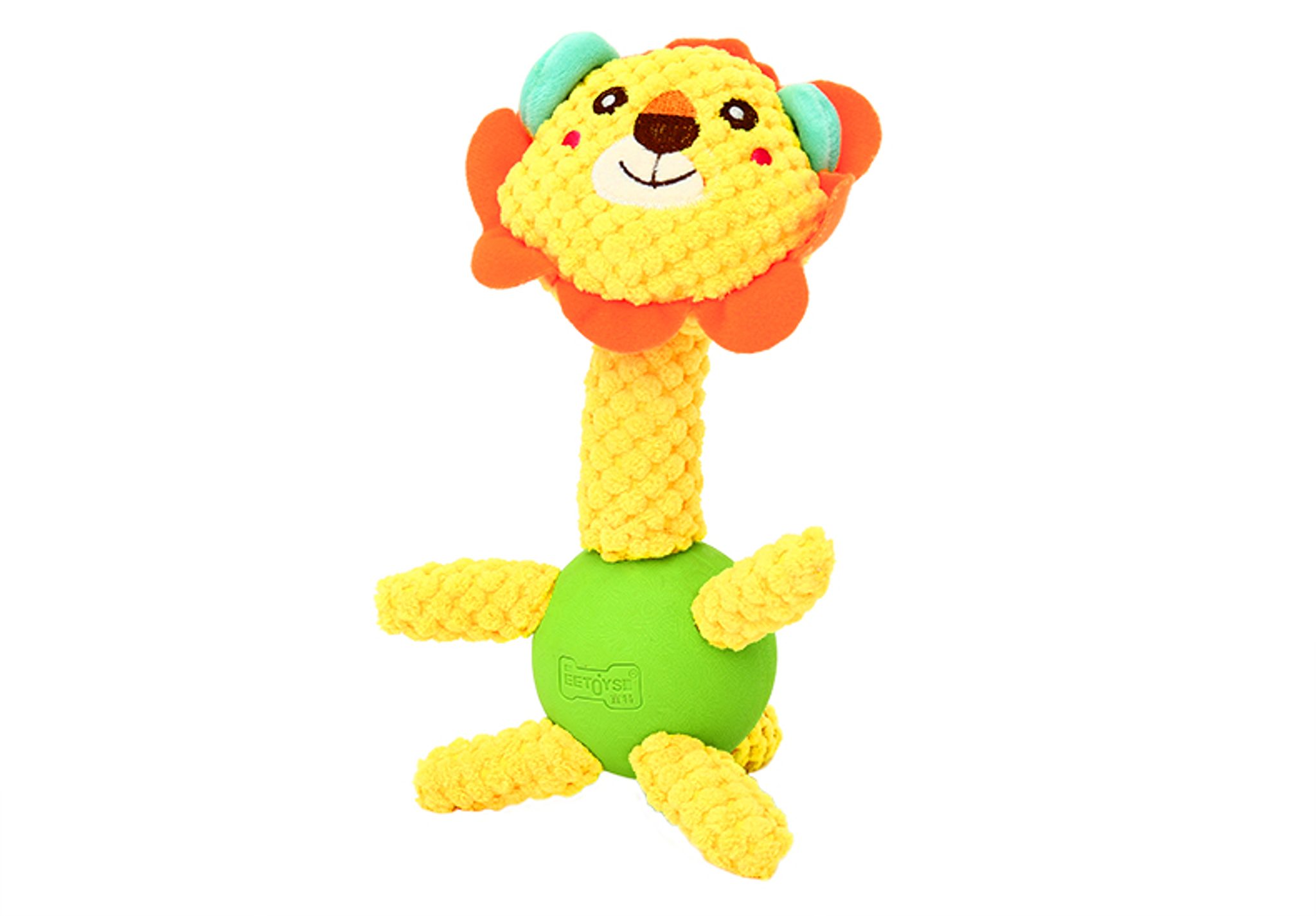 Hračka složená z pískacího míčku a barevného plyšového lvíčka. Je vhodná pro menší i větší pejsky, poskytne jim prima zábavu na dlouhé hodiny a jen tak se nezničí. Pejsek si při žvýkání hračky čistí zoubky a také se zbavuje stresu. O hračku se můžete s pejskem přetahovat nebo s ní trénovat aportování.