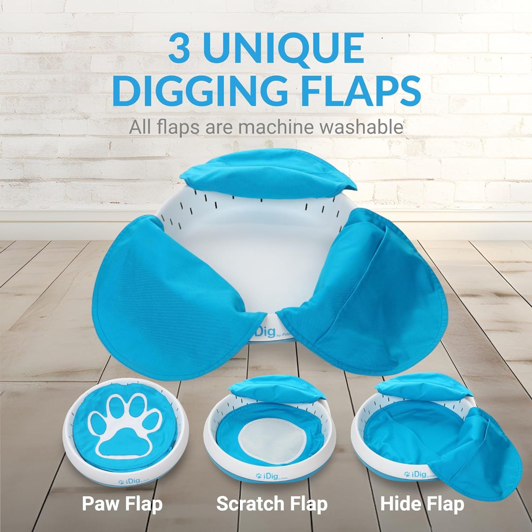 iDig Stay Digging Toy je hračka na hrabání pro pejsky. Má odolnou a robustní konstrukci, takže je ideální pro psy, kteří opravdu rádi hrabou. Díky 3 různým designům klapek nabízí iDig Stay různé úrovně výzev, takže váš pes může hrabat a hledat své poklady.