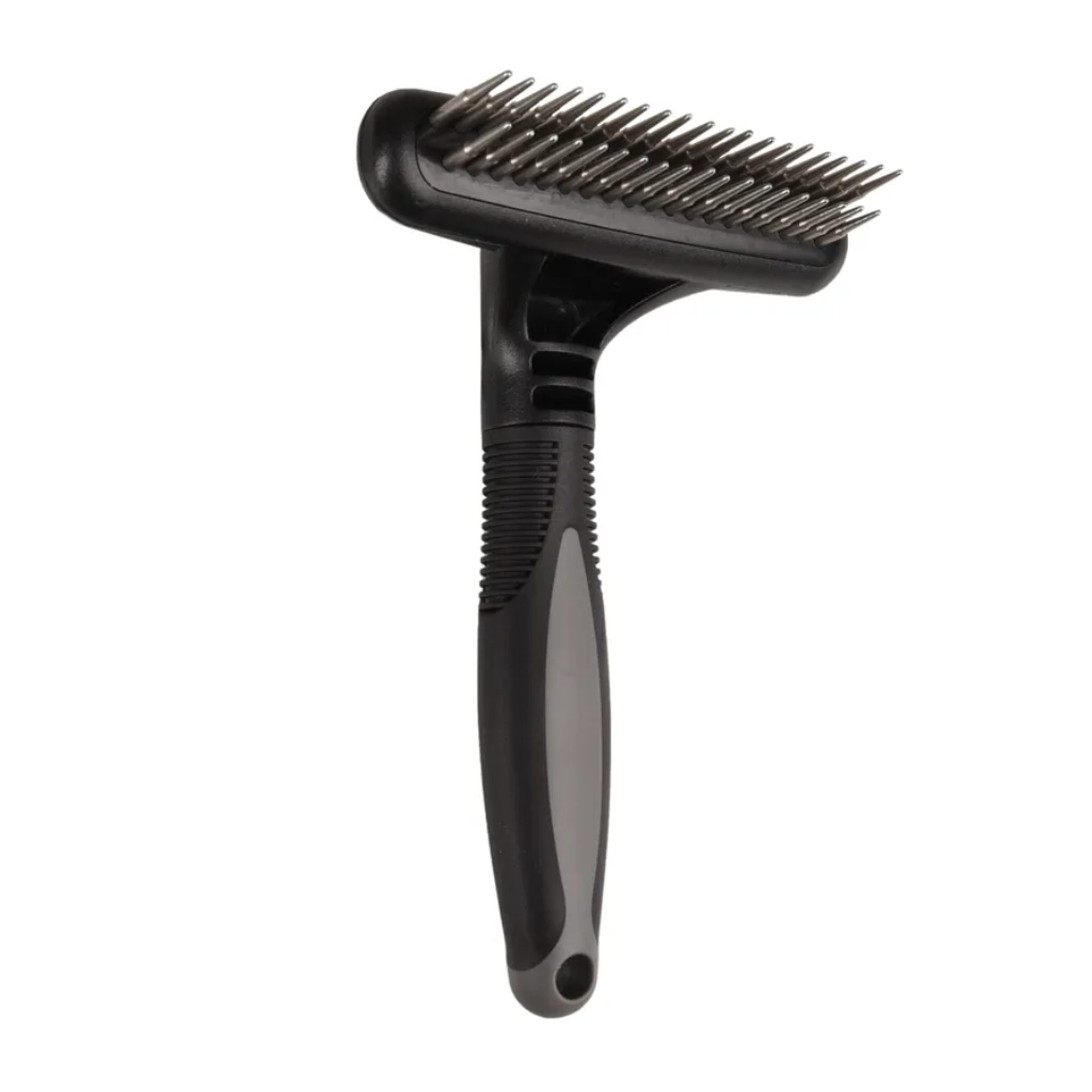 Kartáč Flamingo Comfort je určený k rozčesávání dlouhé, nebo kudrnaté srsti psa. Tato pomůcka je doplněna o dvě řady zaoblených rotujících hrotů z nerezové oceli, díky kterým zlikvidujete šetrně a bezbolestně téměř všechny chlupové chuchvalce, kterou jsou v srsti již utvořeny. Ergonomicky tvarovaná gumová rukojeť s protiskluzovou úpravou padne do ruky každého páníčka!