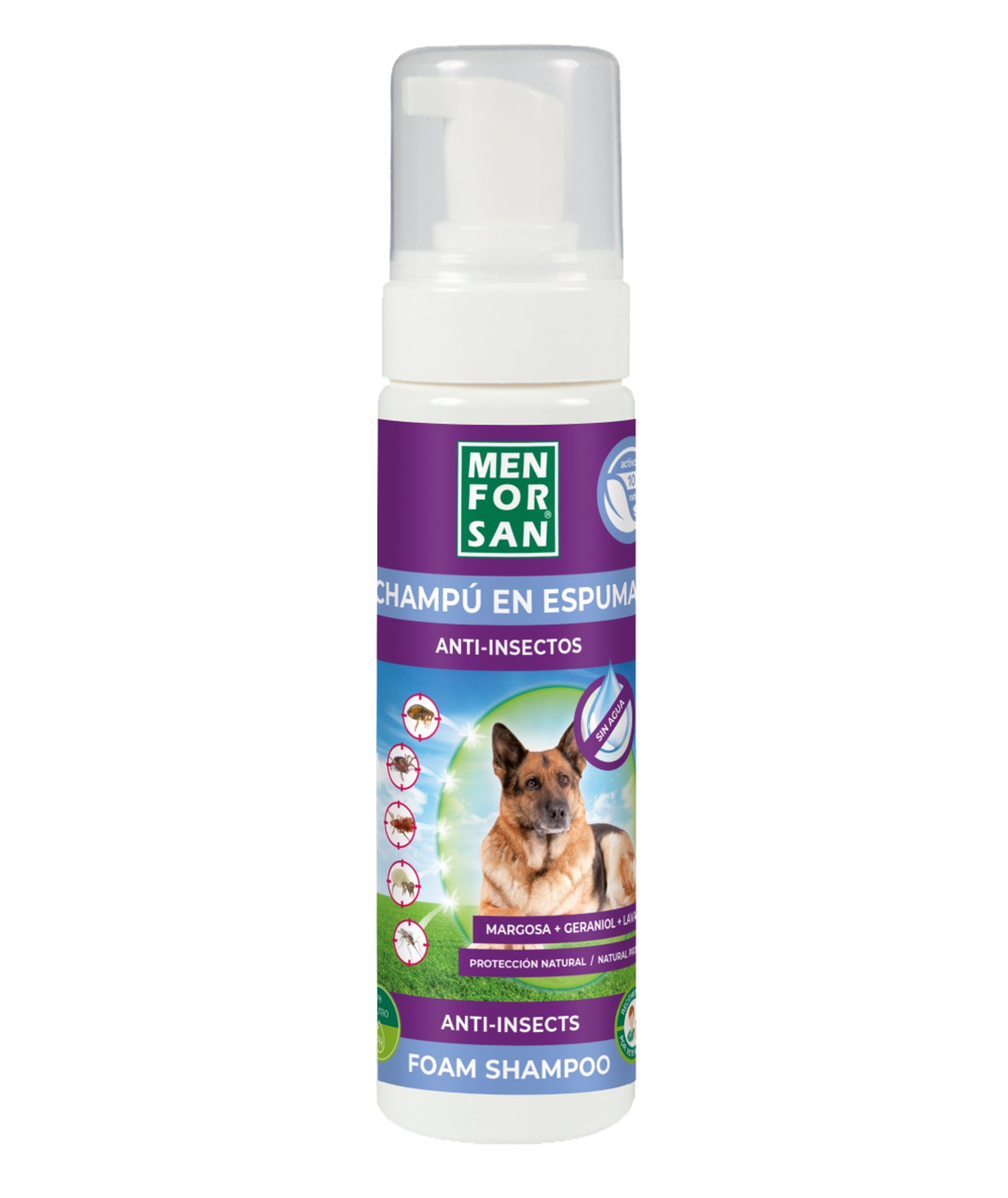 Pěnový repelentní šampon pro psy a kočky z margósy, levandule a gerainoly je dokonalým pomocníkem pro odstranění hmyzu z chlupatého kožíšku vaši kočky či psa a to bez použití vody, ničí bakterie, plísně, parazity a zlepšují imunitní systém. Objem: 200 ml