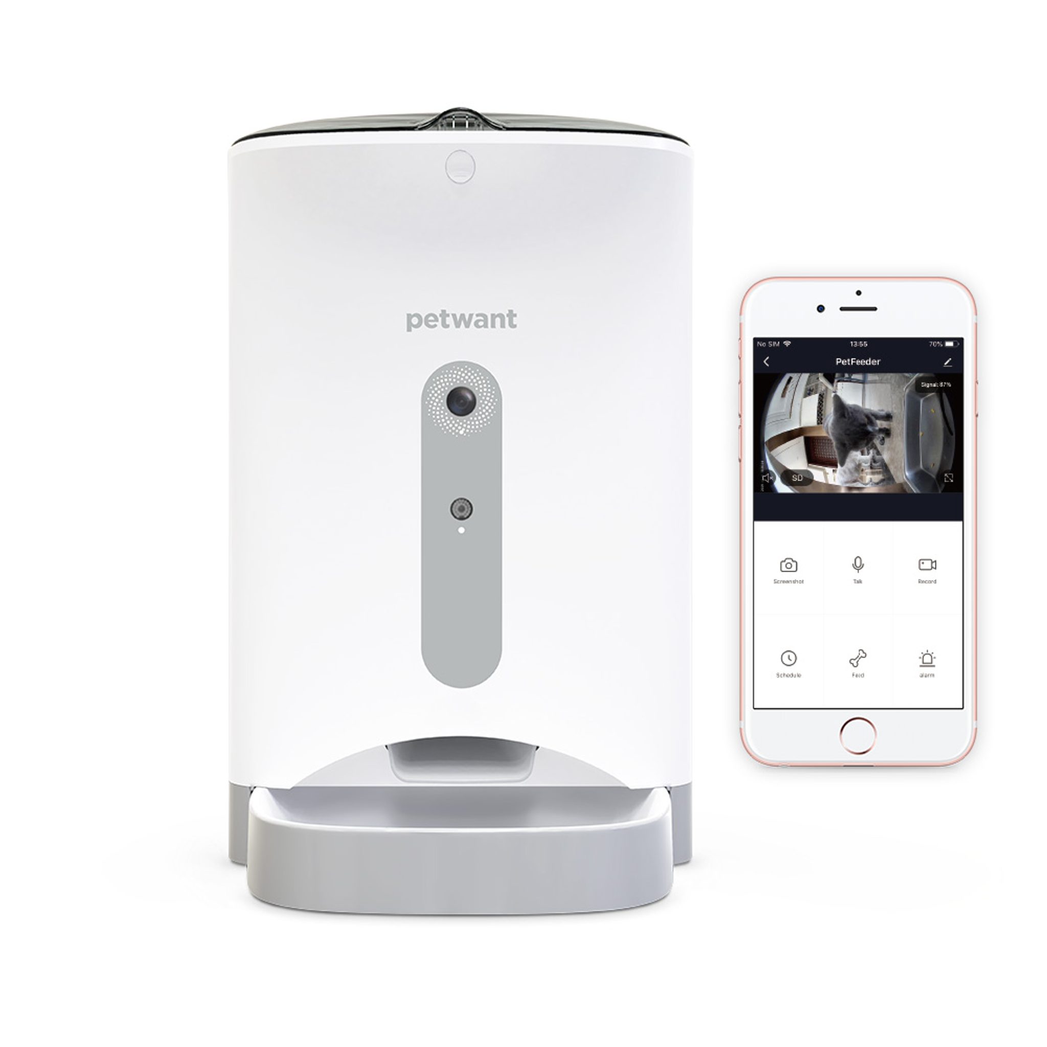 I láska k domácím mazlíčkům prochází žaludkem! Petwant proto vyvinul jedinečný automatický dávkovač Petwant F1 s kamerou, který vám umožní vaše mazlíčky nejen pravidelně krmit, ale také na ně mluvit, nahrávat videa a fotografovat je. Dávkovač má ovládání na dálku v aplikaci vašeho smartphonu, kam se ukládá i historie krmení vašeho chlupáče.
