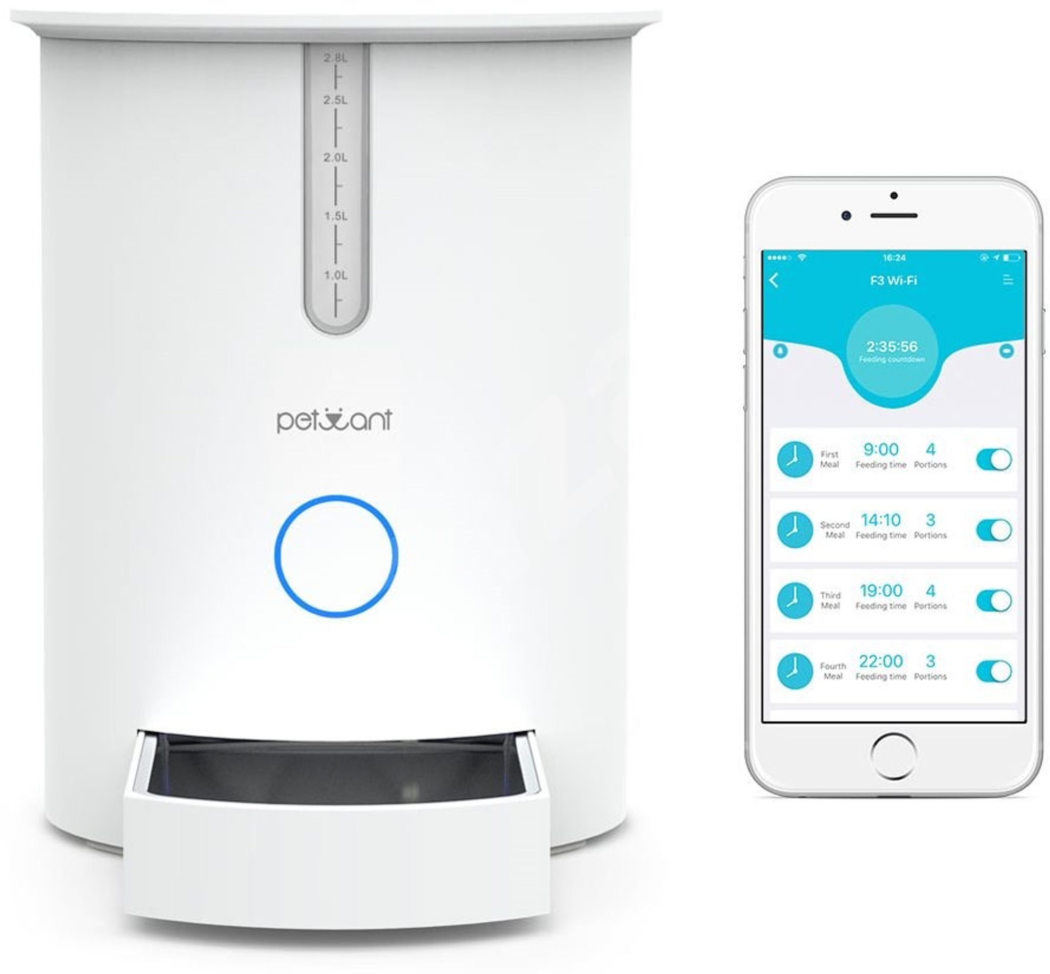 Petwant F3 je moderní automatický dávkovač krmiva, který Vám umožní nakrmit vaše mazlíčky, když nemůžete zůstat doma. Veškerou kontrolu nad dávkovačem a krmením budete mít díky nové mobilní aplikaci, která je dostupná na App Store a Google Play. Vnitřní zásobník pojme až 2,8 l suchého krmiva a celý dávkovač je vyroben z ekologicky šetrného ABS plastu. Vhodné na granule velikosti do 1,5 cm.