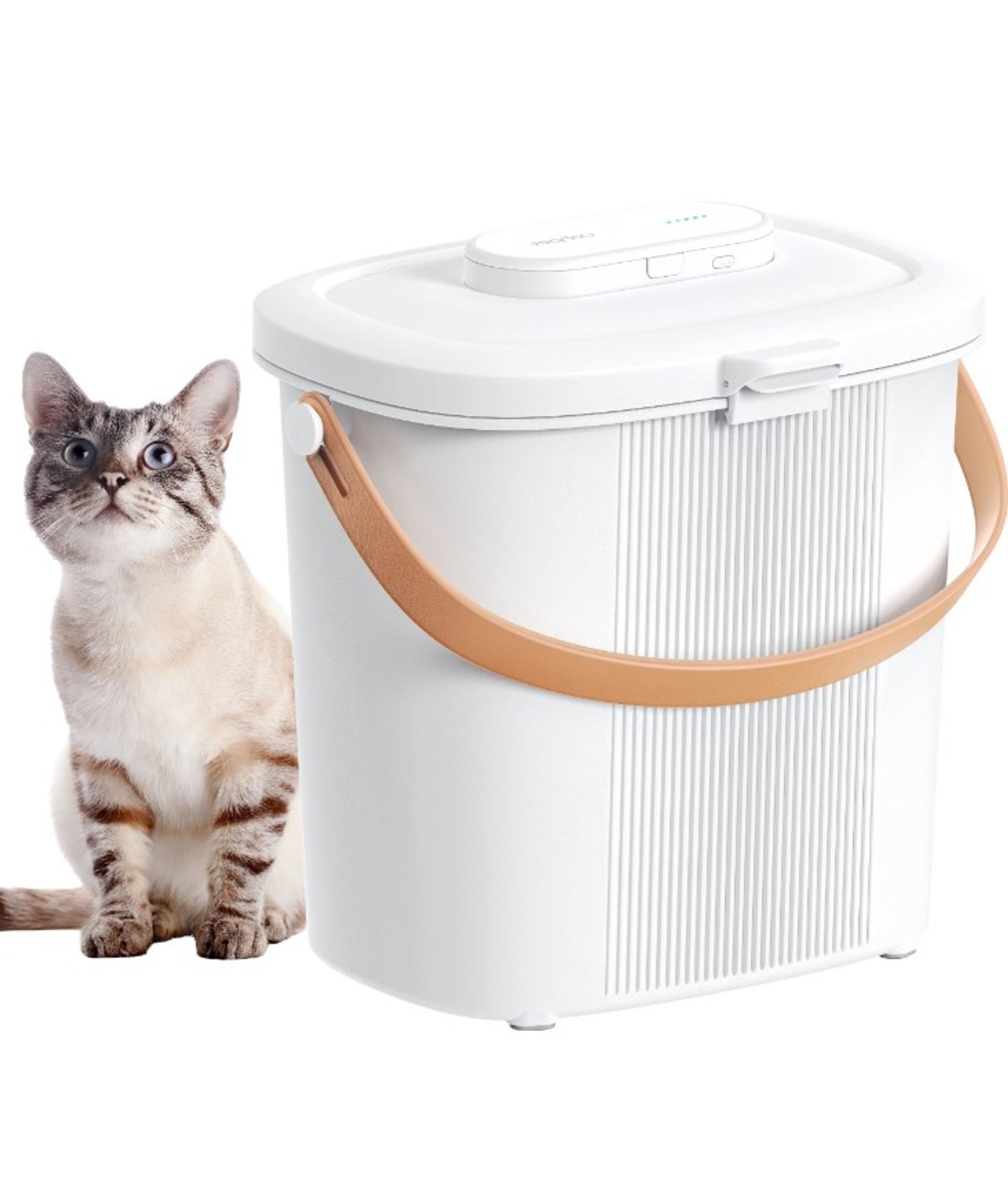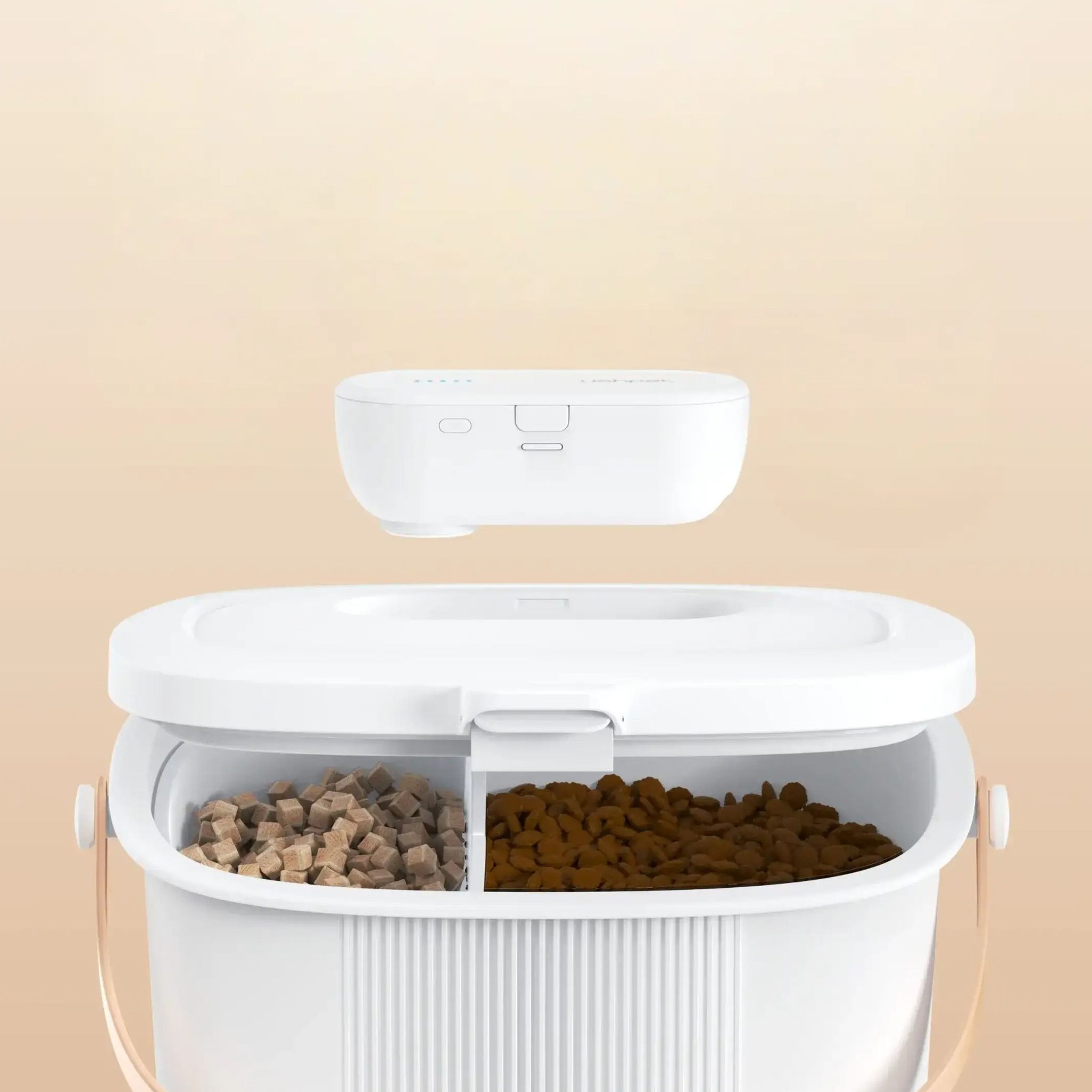 Uahpet chytrý zásobník na krmivo je nádoba navržená pro skladování krmiva pro vaše mazlíčky. Po zavření víka se uvnitř zásobníku automaticky vytvoří vakuum a krmivo tak díky tomu zůstává stále čerstvé a chutné. Navíc pro uživatele telefonů iPhone lze zásobník ovládat skrze aplikaci iOS ve vašem chytrém telefonu a vy tak máte vždy dokonalý přehled o tom, kolik krmiva v zásobníku ještě zbývá. Velikou vychytávkou tohoto zásobníku je samostatná vakuovací jednotka, kterou můžete používat i odděleně na vakuovaní jiných potravin v domácnosti. Zásobník pojme až 15 l krmiva (cca 6kg) a má oddělenou přihrádku na sušení mrazem o objemu 2l.