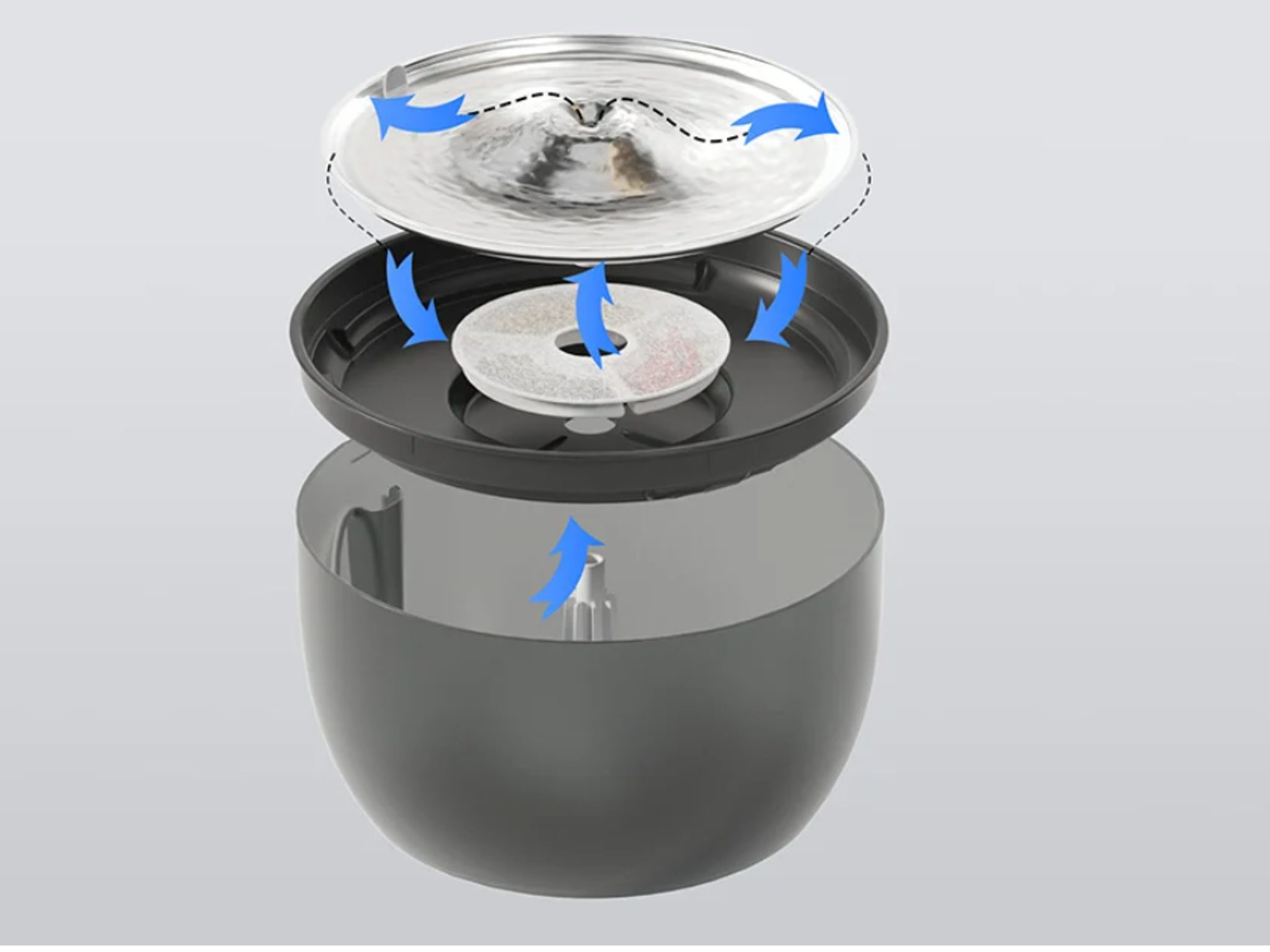 Nerezová ocel poskytuje vašim mazlíčkům komfort při pití a vám při údržbě. Nerezová ocel je dokonale odolná vůči korozi a navíc narozdíl od ostatních materiálů neobsahuje škodlivé BPA. Má dlouhou životnost a je odolná vůči poškození, včetně poškrábání. A co víc? Údržba tohoto zařízení je velmi jednoduchá – díky minimalistické konstrukci fontánku snadno rozložíte a umyjete i v myčce na nádobí (s výjimkou pumpy a filtru).