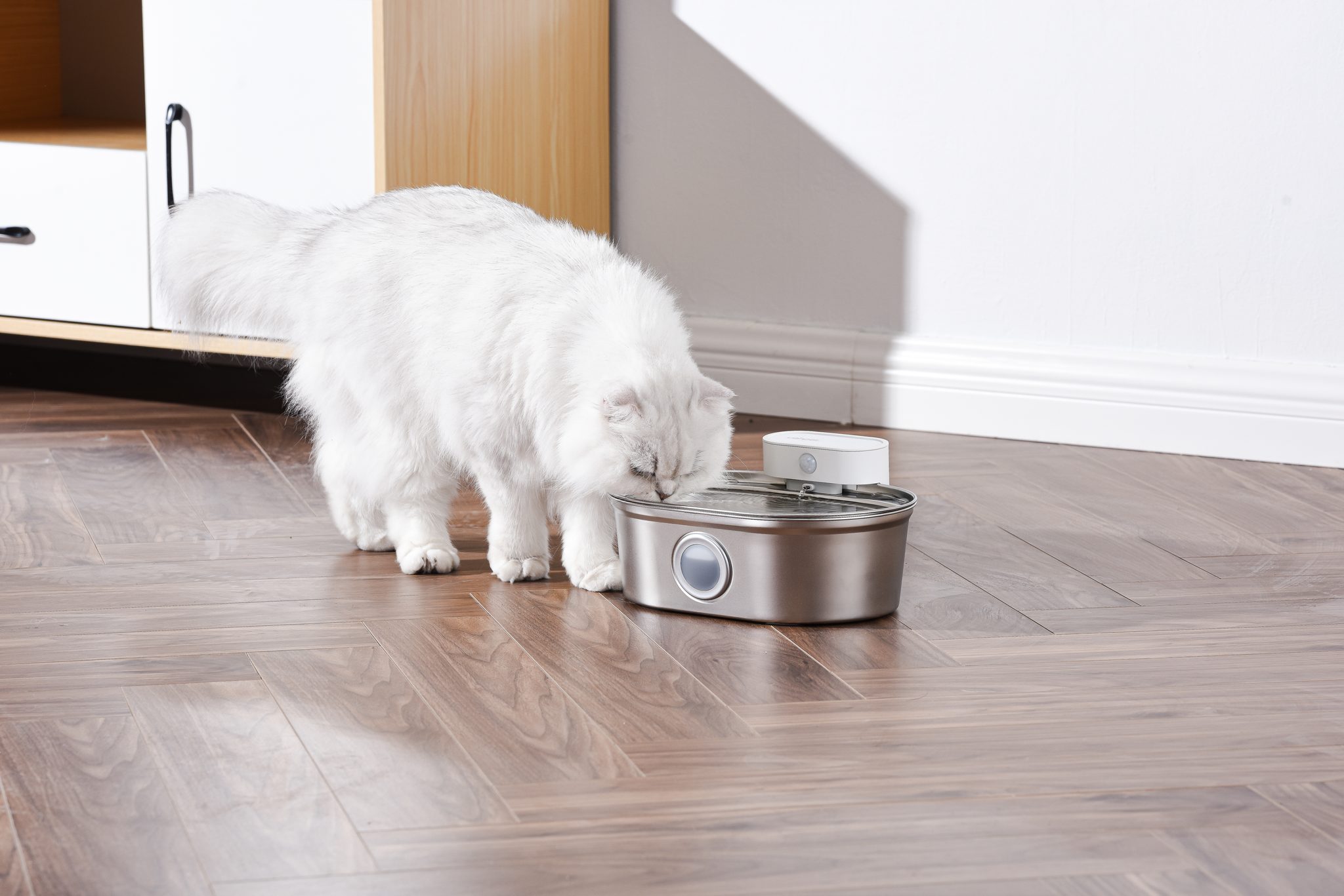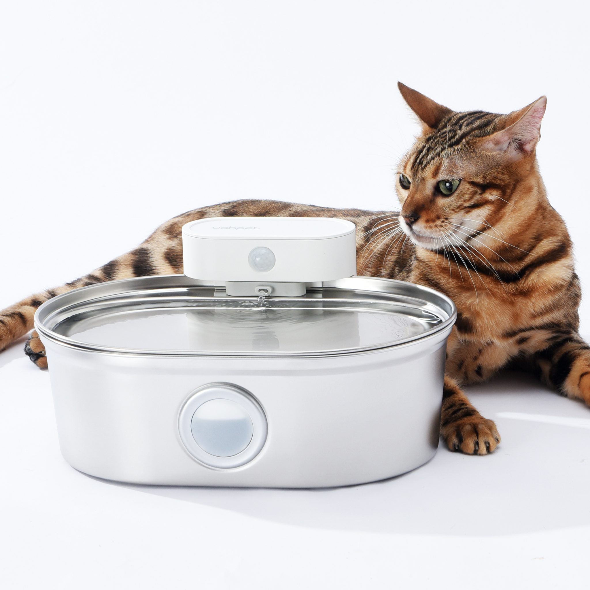 Bezdrátová fontána z nerezové oceli UahPet Pro má kapacitu 2 litry. To znamená, že vydrží až 15 dní nepřetržitého provozu v domácnosti s jednou nebo dvěma kočkami. Velkokapacitní baterie s 5000mAh skvěle postačí až na 45 dní provozu. Není tak třeba fontánu často nabíjet. Fontána od UahPet pracuje ve dvou režimech, časování, které zapíná proud vody každých 20 minut, a spuštění na senzor.