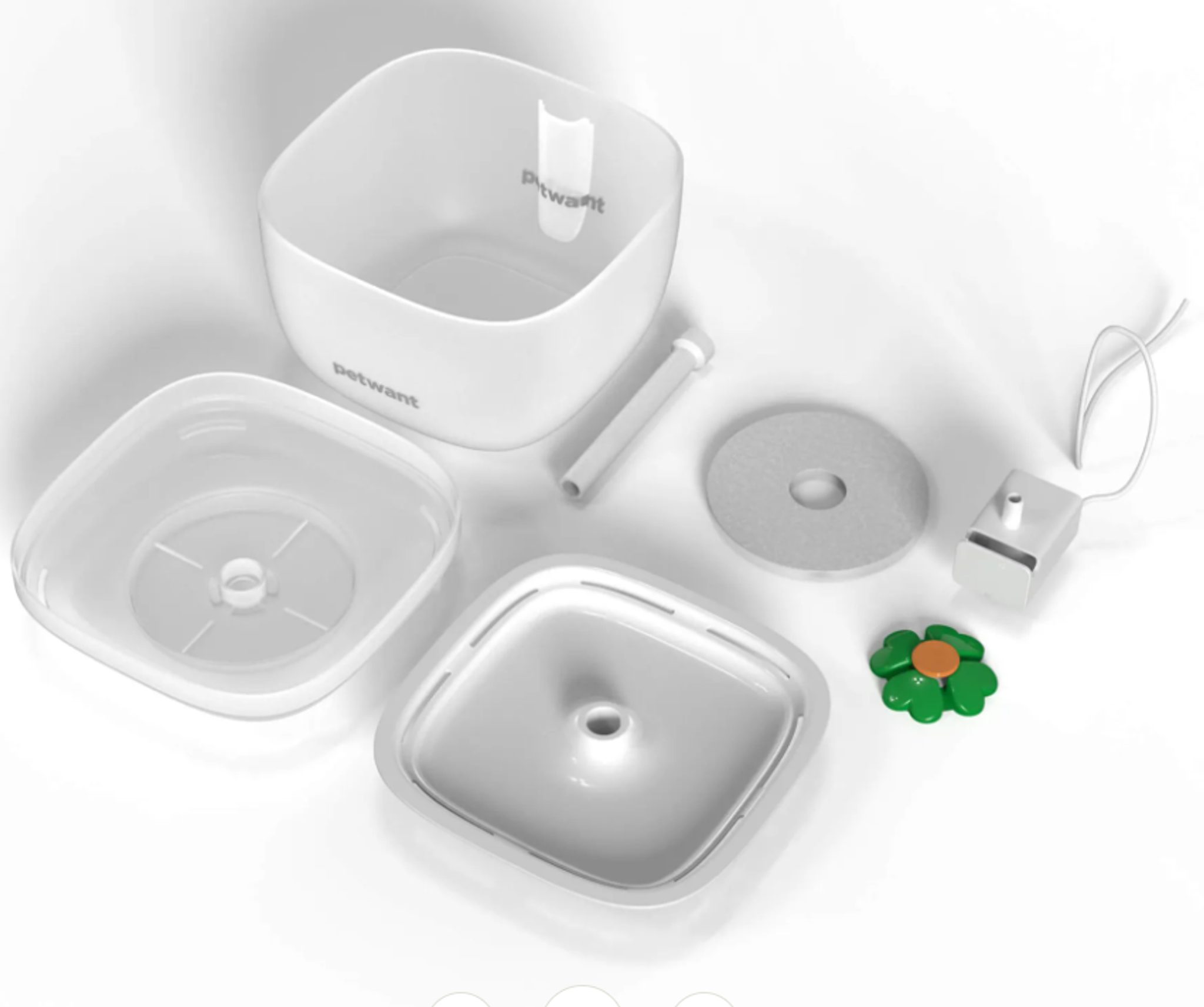 Fontána s originálním designem Petwant má minimalistickou konstrukci a disponuje kapacitou až 2 litry. Ta mazlíčkům vydrží pár dní bezstarostné dovolené. Díky Petwant fontáně W7 váš mazlíček bude mít nepřetržitý přísun čerstvé a zdravé vody, která díky květinovému designu na misce teče z 360 stupňů.