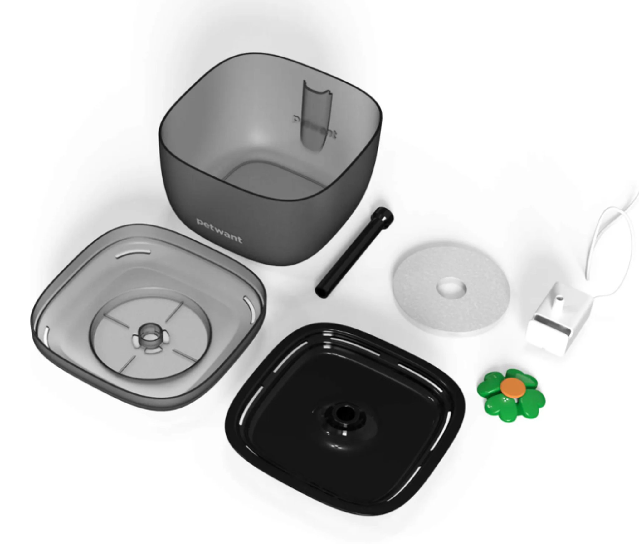 Petwant W7 je vyhotovena z kvalitních PP materiálů potravinářského plastu, který je pro domácí mazlíčky bezpečný a snadný k čištění. Dostupná je navíc ve dvou barvách – bílé a černé. Fontána pro domácí mazlíčky se dá snadno rozebrat a vyčistit a zase složit, díky její jednoduché minimalistické konstrukci. Údržba fontány tak nebude žádný problém!