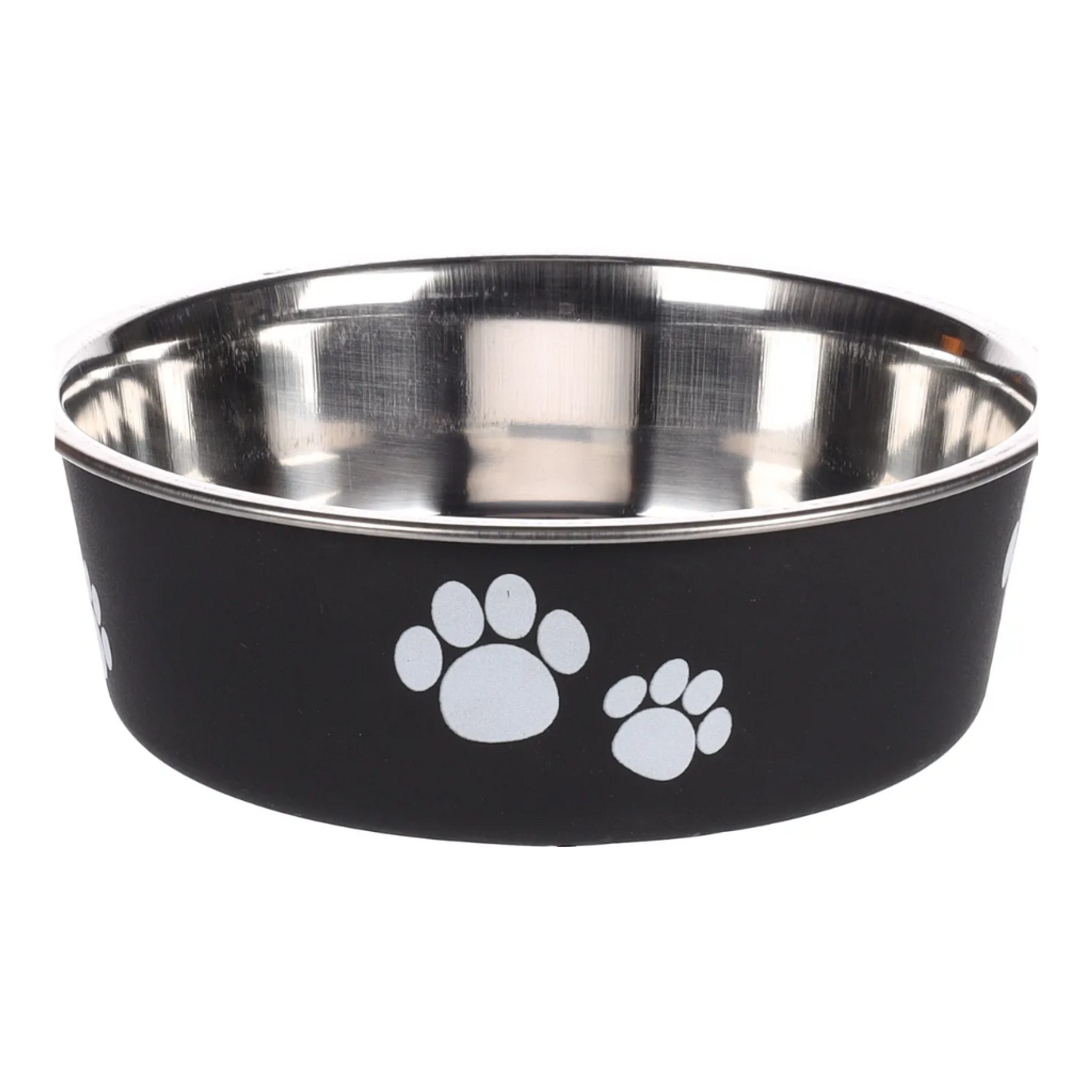 Nerezová miska Flamingo Kena je vhodná pro všechny velikosti domácích mazlíčků na suchou a mokrou stravu, nebo vodu. Odolná a snadno čistitelná miska má snímatelný gumový kroužek na spodní straně dna, který zabraňuje klouzání a tlumí hluk. Miska s roztomilým potiskem tlapek a kostí na vnější straně misky lze umýt v myčce.