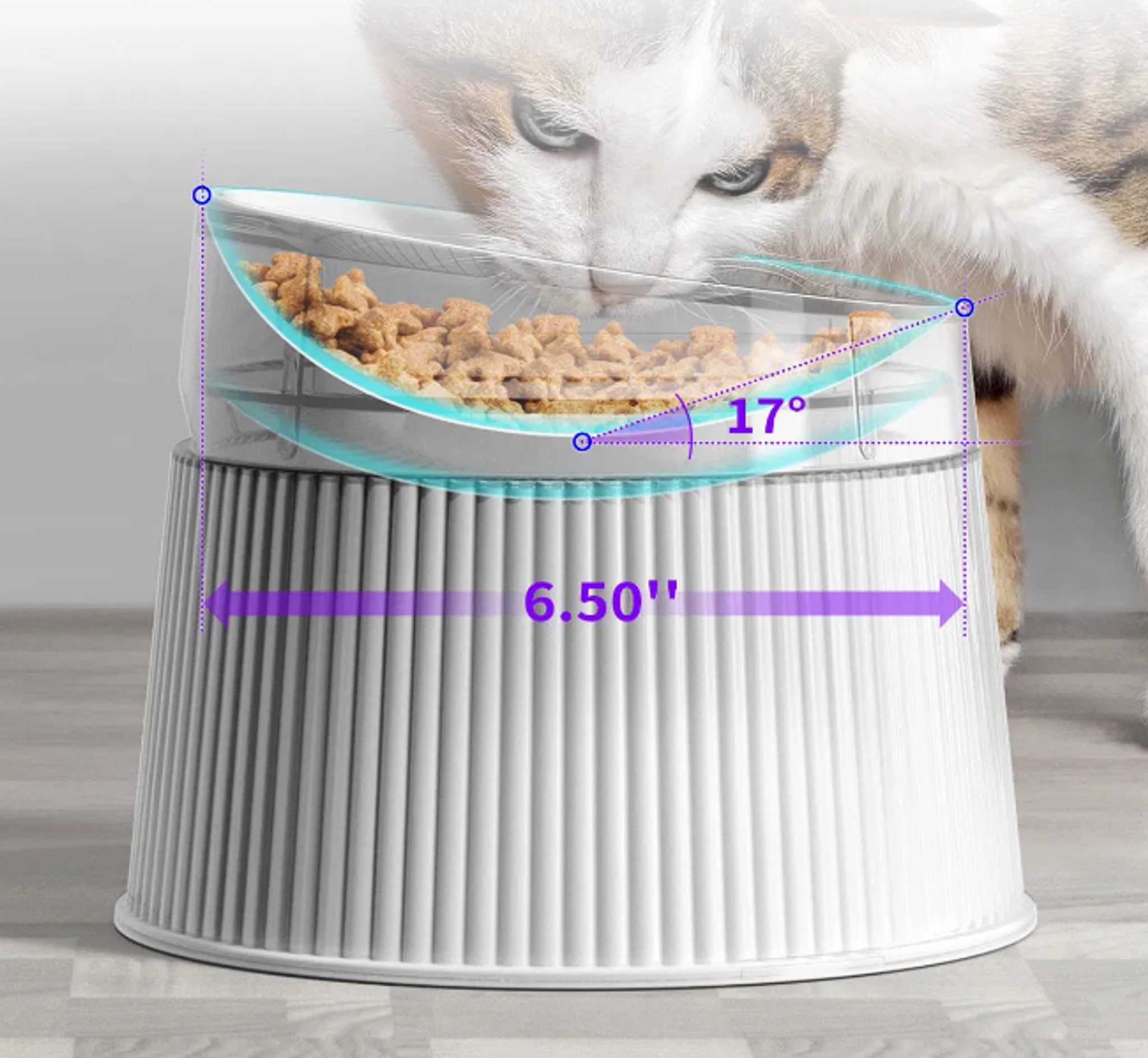 Vyvýšená geometrická miska umožní kočičkám pohodlně jíst, aniž by si ničily záda a krční páteř. Ergonomický tvar misky jim umožní vychutnat si svou denní porci krmiva bez zbytečného namáhání páteře. Miska má objem 150 ml a je tak vhodná pro jakoukoliv porci jídla nebo pití. Miska je navržená proti převrhnutí, snadno se čistí a skládá.