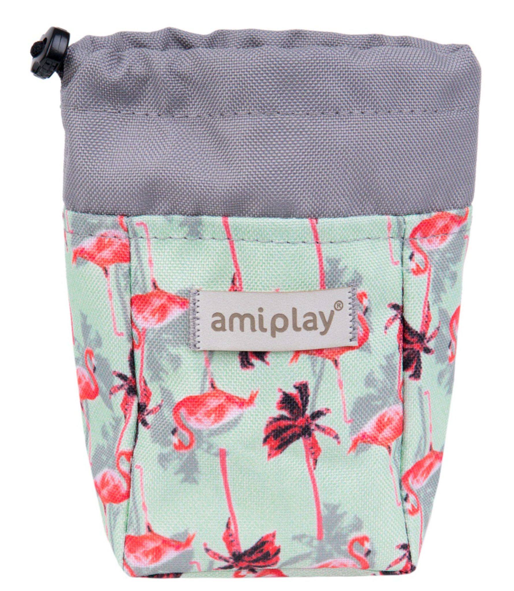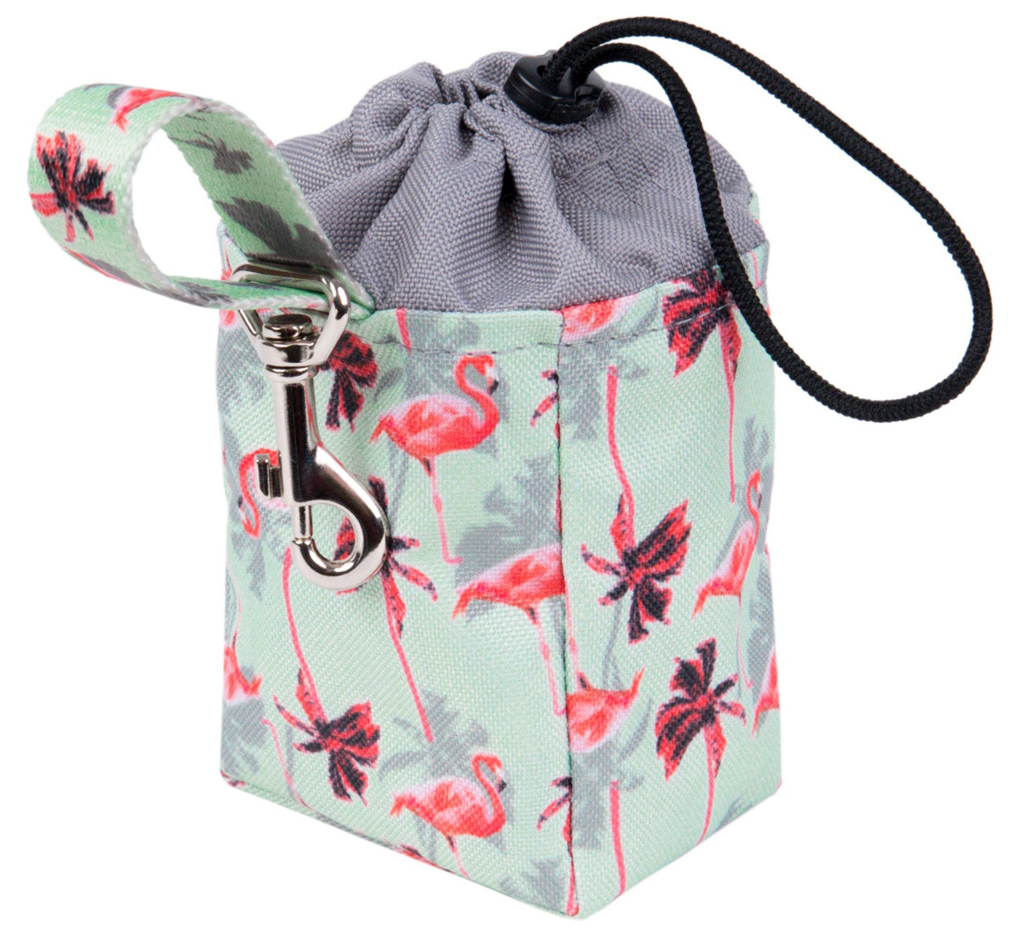 Stylová stahovatelná taštička na pamlsky BeHappy Flamingo v hravém designu usnadní trénink i procházky s vaším mazlíčkem. Lehká, praktická a vždy po ruce – pro radost z každého společného momentu. 8 x 6 x 10 cm.