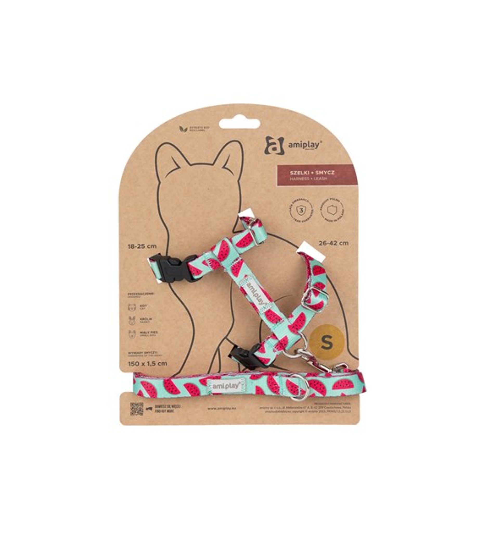 Stylový set postroje a vodítka amiplay BeHappy Watermelon je ideální pro každodenní procházky s vaší kočkou. Lehký, pohodlný a hravě barevný – pro bezpečný pohyb i maximální komfort vašeho mazlíčka.