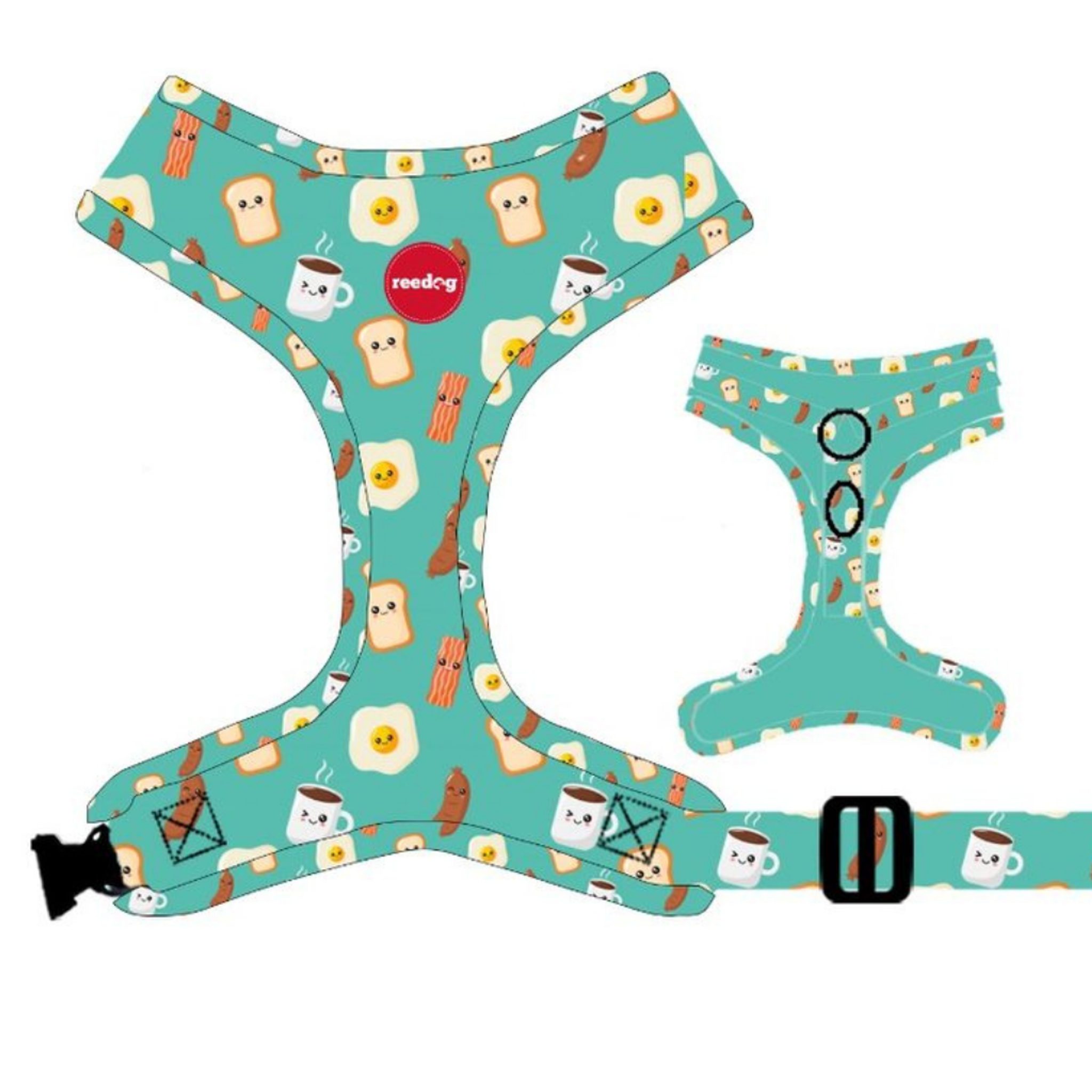 Oblíbený a designový postroj z velmi lehkého a prodyšného materiálu s motivem chleba a logem značky Reedog pro maximální pohodlí vašeho mazlíčka. Postroj má pohodlný střih, který netrhá srst, netlačí a nedře pejska, je vhodnou variantou pro pejsky kteří táhnou, aby nebyla zatěžována krční páteř. Díky speciálnímu tvaru se postroj snadno a rychle nasazuje, má nastavitelné popruhy pro optimální přizpůsobení na tělo psa a kroužek pro uchycení vodítka.