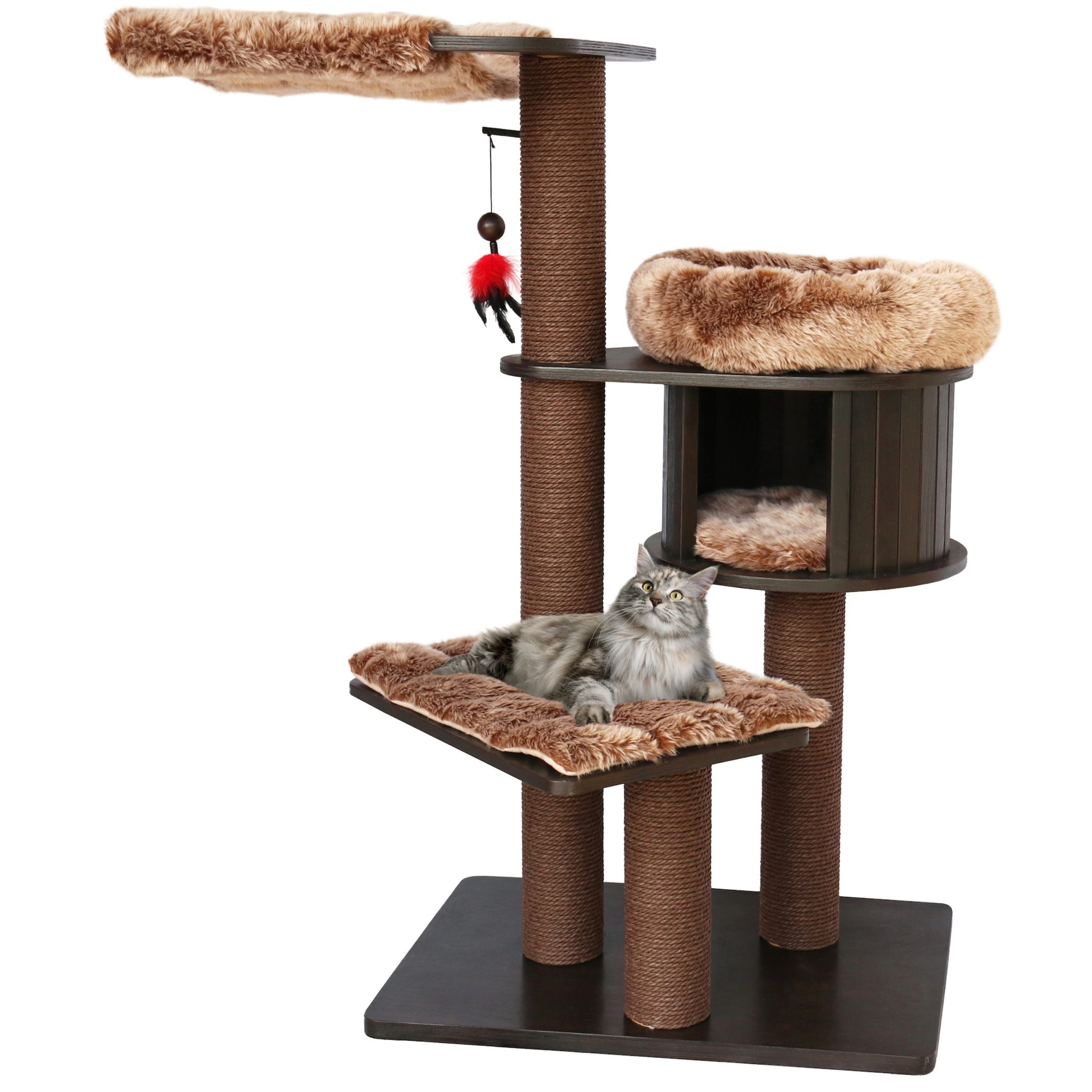 Škrabadlo nabízí kombinaci škrabacích sloupků, plošin a úkrytů, takže kočkám dopřeje nejen dostatek prostoru pro lezení a hraní, ale také klidná místa pro odpočinek. Díky hnědo-šedému barevnému provedení se snadno začlení do každého interiéru a působí elegantně i prakticky zároveň.