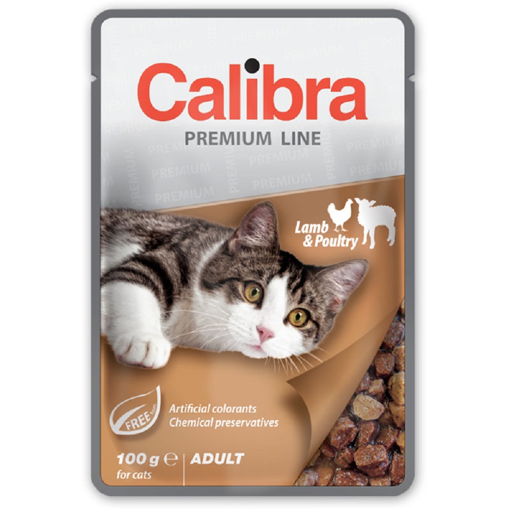 Kompletní krmivo pro dospělé kočky s jehněčím a drůbežím v omáčce.