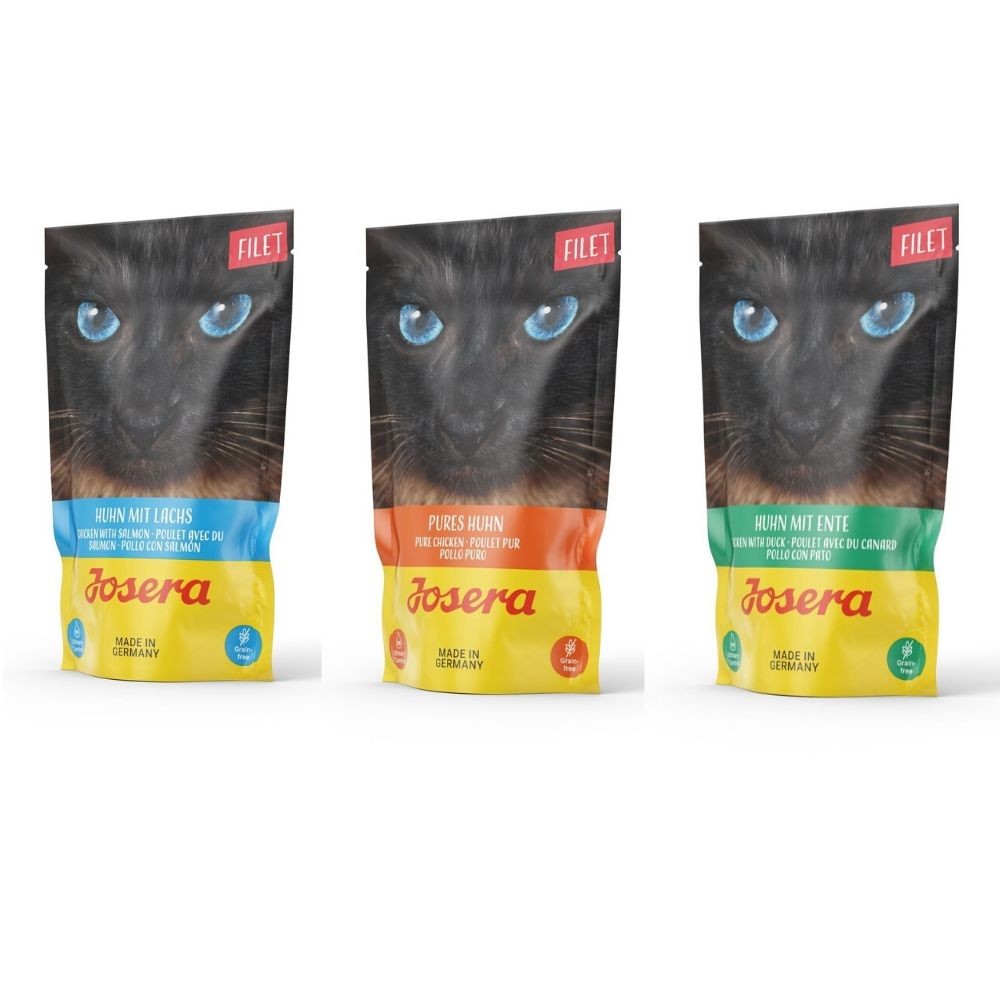 Kompletní krmivo pro kočky. Lahodná mokrá strava, multipack se třemi druhy, šťavnaté kousky – filet, vysoký podíl masa, s vitamíny a minerály, bezobilné, ve formě kapsiček.