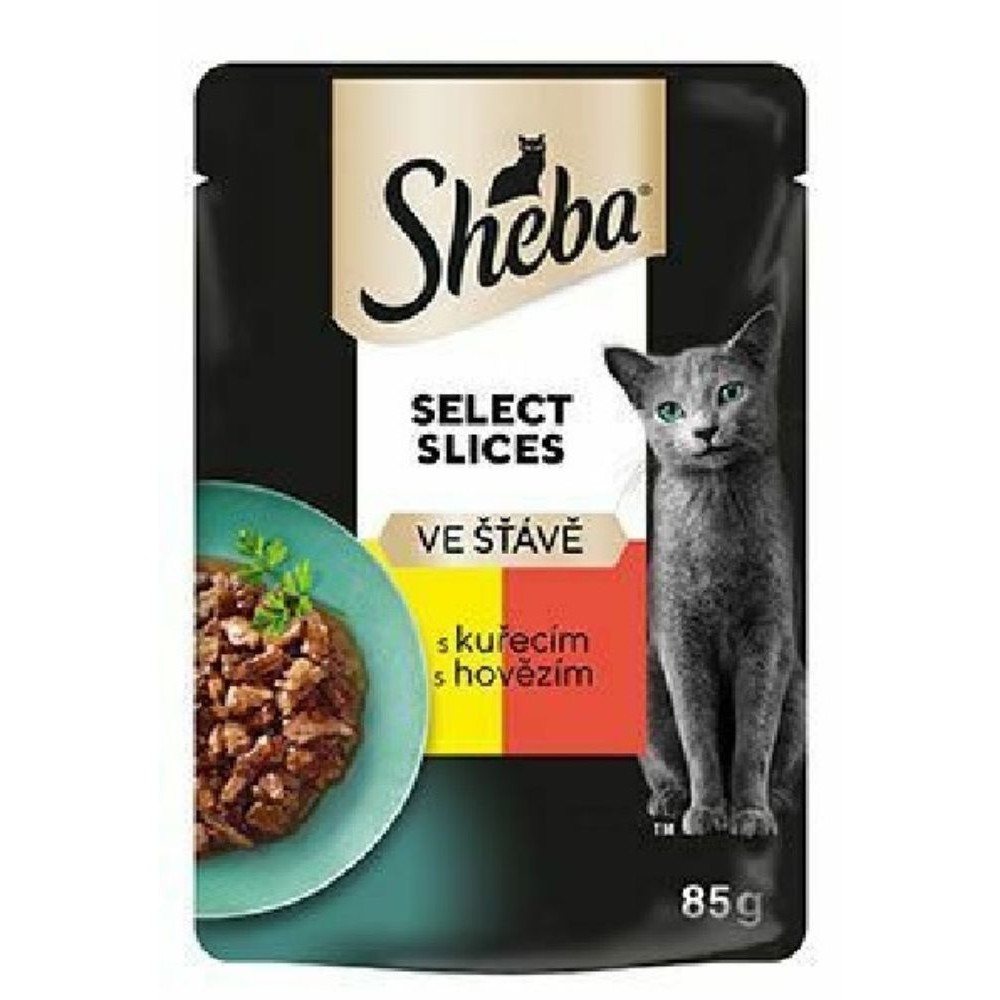 Lahodná kapsička pro kočky s vybraným kuřecím a hovězím masem pro dospělé kočky.