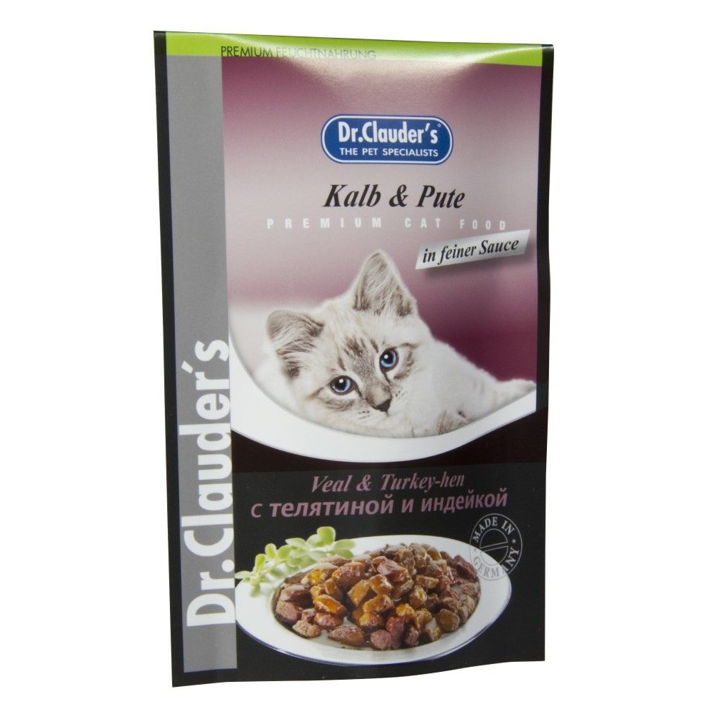 Kompletní krmivo pro kočky. Kusy masa ve výborné omáčce, telecí + krůta.