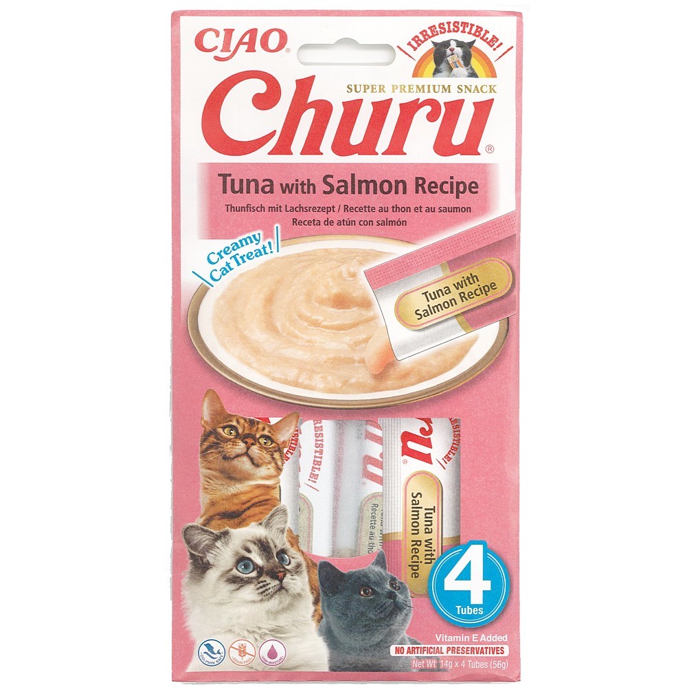 Doplňkové krmivo pro kočky. Masové pyré s divokým mořským tuňákem a lososem.