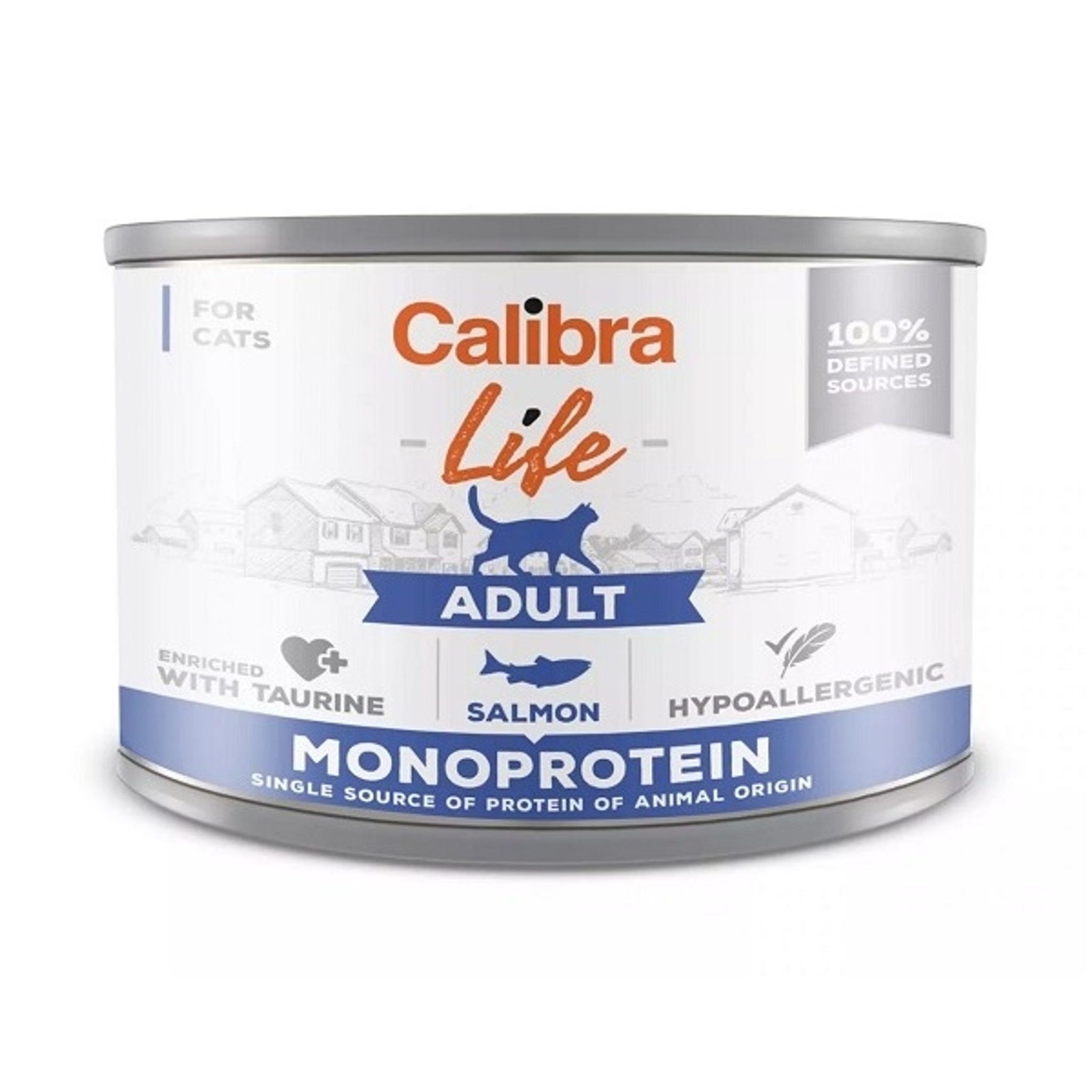 Calibra Cat Life Adult Salmon je kompletní vlhké krmivo pro dospělé kočky založené na jediném proteinu, díky této vlastnosti se jedná o hypoalergenní krmení, které je též bezobilné a bezlepkové. Složení napomáhá lehké stravitelnosti a konzerva obsahuje jen specifikované suroviny té nejvyšší kvality. Produktová řada Life je určena k podávání po celý život, její vytvoření bylo inspirováno specifiky jednotlivých životních období a byly zde zohledněny konkrétní nároky na výživu, složení a celkovou energetickou hodnou.