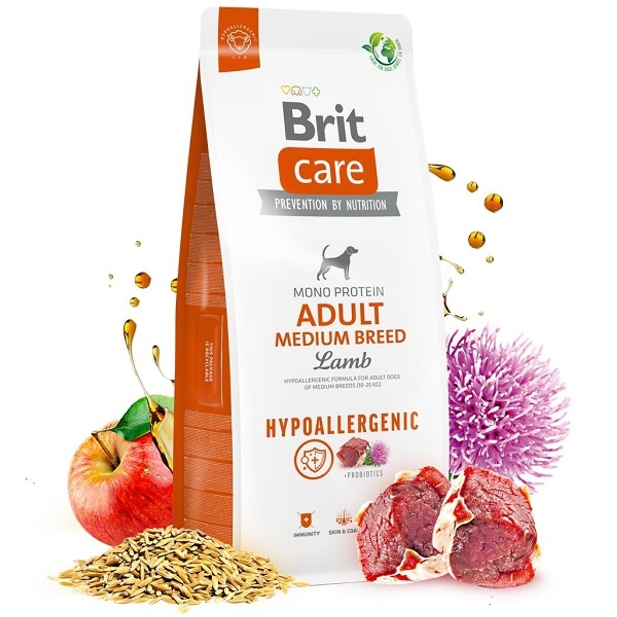 Brit Care Dog Hypoallergenic Adult Medium Breed Lamb je superprémiové hypoalergenní krmivo pro dospělé psy středních plemen s hmotností mezi 10 a 25 kg. Díky šetrné receptuře s jehněčím masem a rýží je ideální pro psy s citlivým trávením nebo sklony k potravinovým alergiím. Krmivo podporuje zdraví trávení, silnou imunitu a krásnou srst.