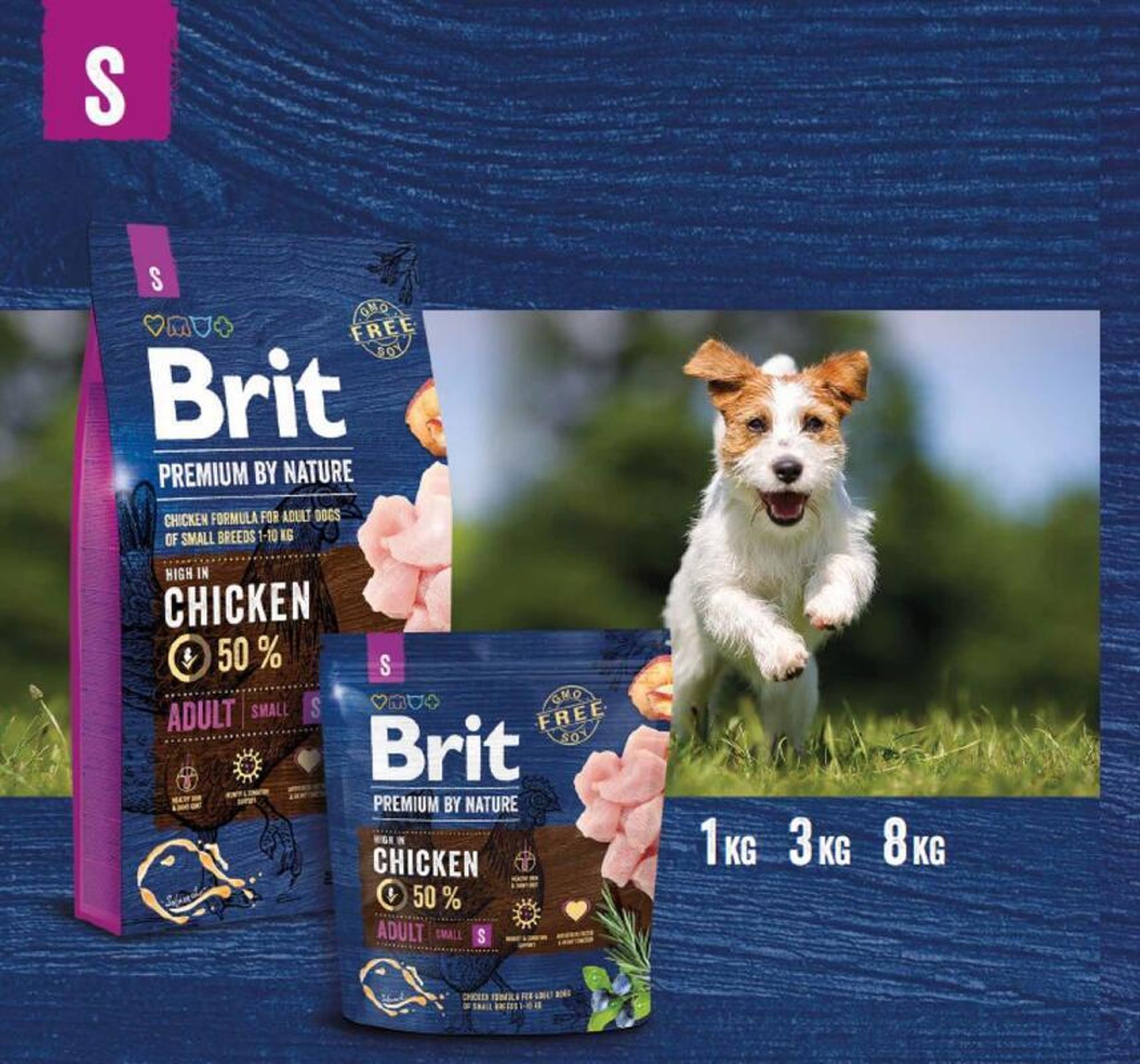 Brit Premium by Nature Adult S je ideální volbou pro dospělé psy malých plemen do 10kg váhy. Dopřejte svému pejskovi to nejlepší pro dlouhý a aktivní život! Vyrábí se z čerstvého i sušeného kuřecího masa a receptura je obohacena o lososový olej, ovoce a bylinky.