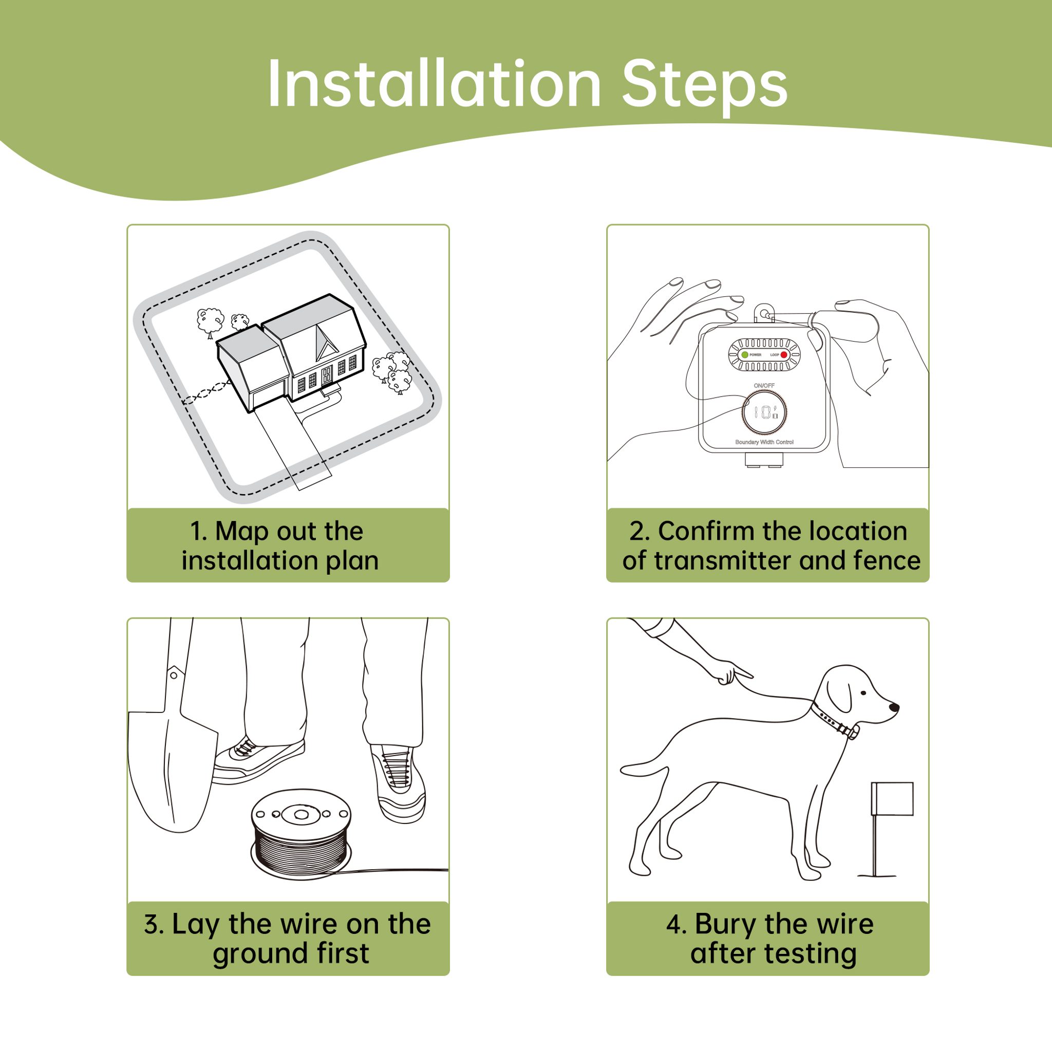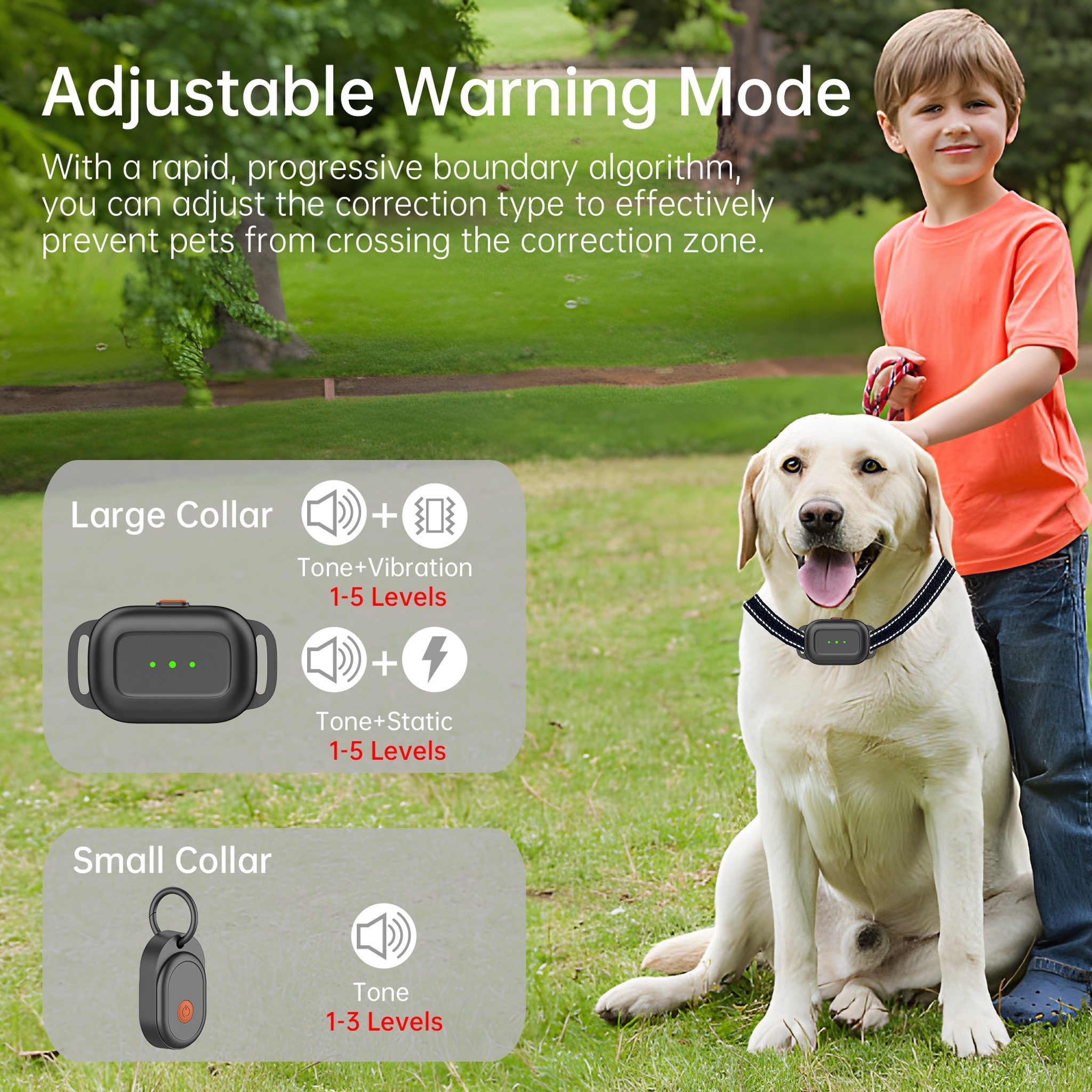 Vymezte hrací plochu svého mazlíčka bez námahy a zajistěte dokonalou rovnováhu bezpečí a svobody. Přijímač umístěný na obojku pejska jej v případě překročení korekční zóny trénuje, aby se držel v bezpečných hranicích (pomocí zvuku, vibrace nebo impulsu). Podle Vámi zvoleného výběru přijímače můžete mít k dispozici pouze zvukové upozornění nebo i vibraci a korekci v podobě statického impulsu. Zvuk se stupňuje ve 3 úrovních, vibrace a statický impuls v 5 postupných úrovních. Přikoupením dalších přijímačů je možné ohradník použít pro neomezený počet psů.