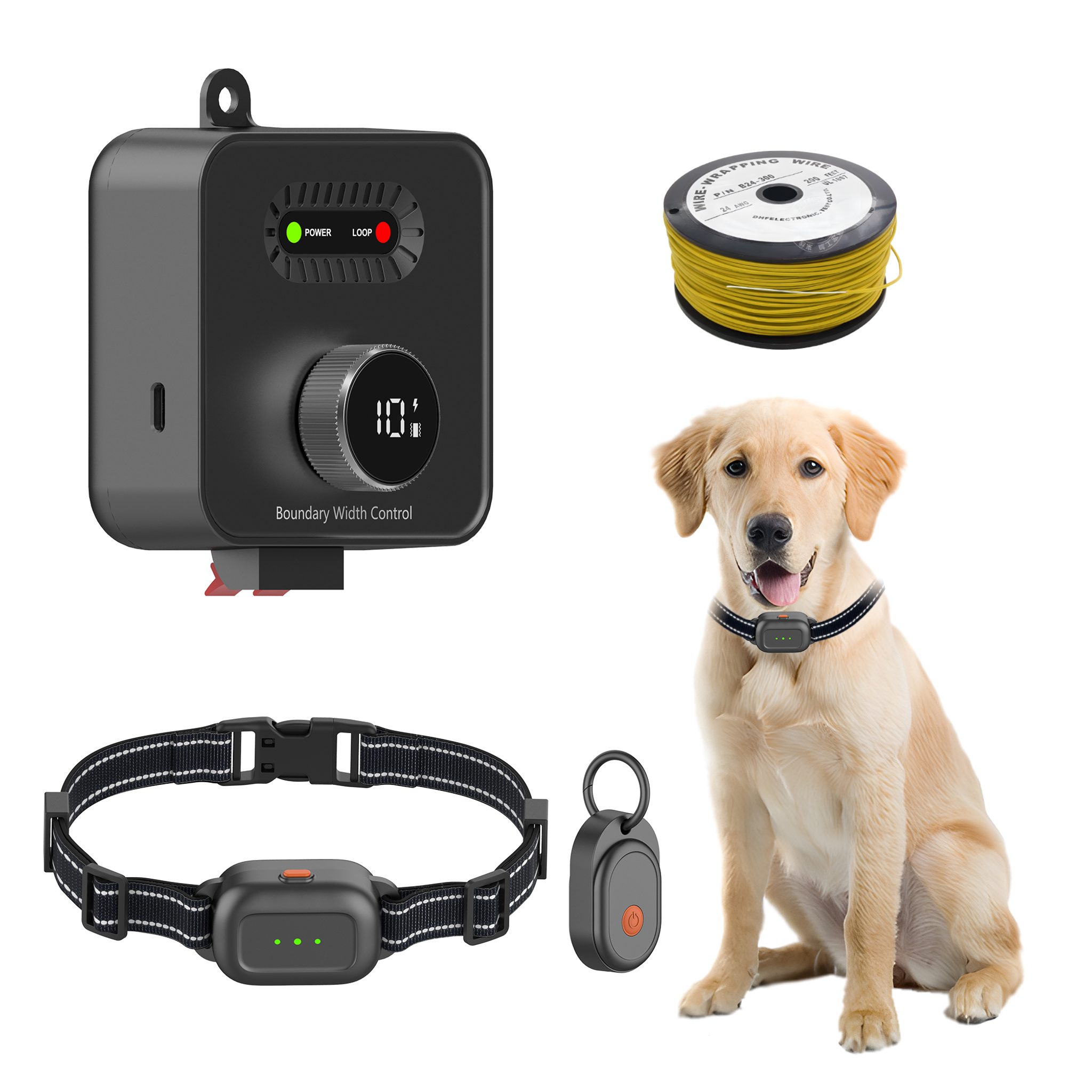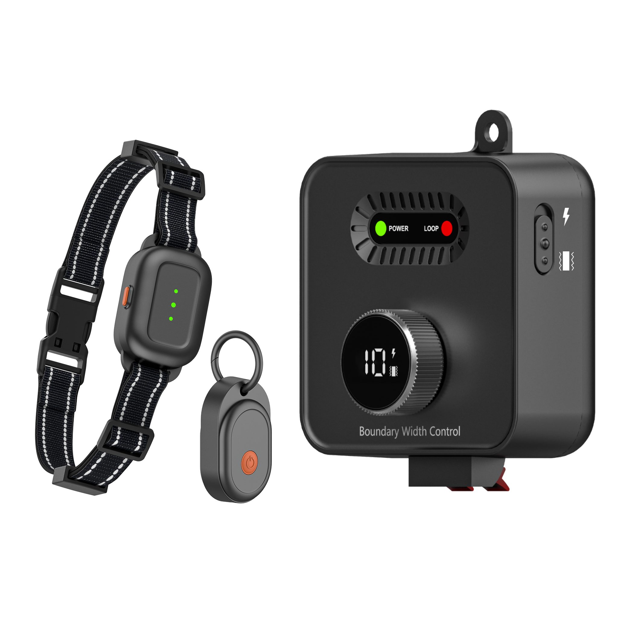 Ohradník F600 poskytuje Vašemu pejskovi svobodu i bezpečí. Obsahuje základnu, která přes drát o délce 70 metrů umístěný bezpečně v zemi přenáší radiový signál a vytváří tak ohraničený a bezpečný prostor, kde se váš pejsek může volně pohybovat. Základna má interaktivní inteligentní knoflík s 10 úrovněmi nastavení signálu pro přesné ovládání šířky hranice vymezeného prostoru. Otáčením knoflíku ve směru hodinových ručiček se hranice vymezeného výběhu zvětšuje.