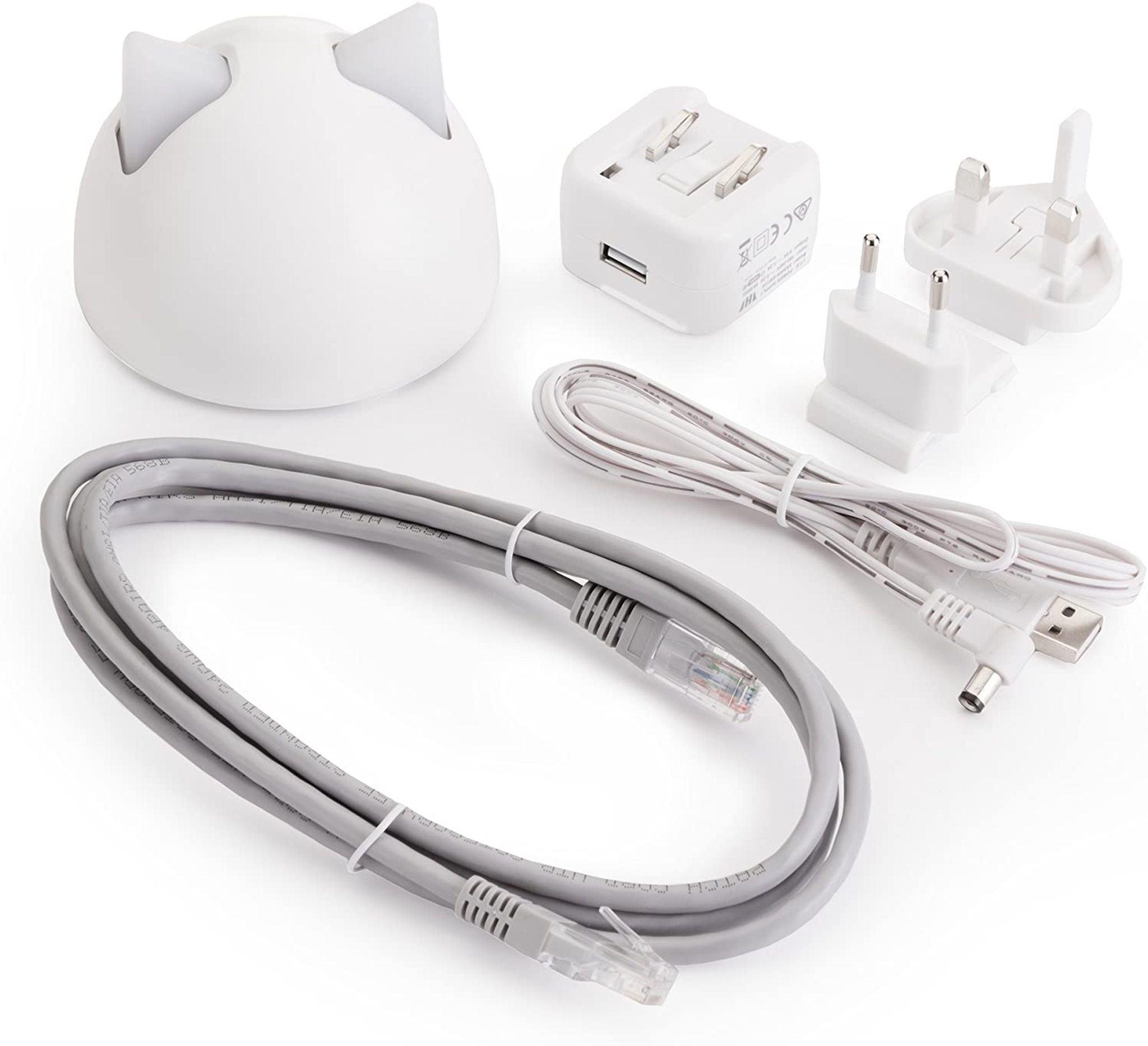 SureFlap Hub je dodáván s adaptérem a ethernetovým kabelem pro připojení k WiFi routeru. Toto lze použít pouze u modelů Connect produktů SureFlap. Pokud si nejste jisti, zda vaše dveře budou kompatibilní s Connect Hub, zkontrolujte levý horní roh vnitřního rámu. Pokud vidíte malou ikonu, která se podobá kočce, jsou vaše dveře kompatibilní s rozbočovačem.