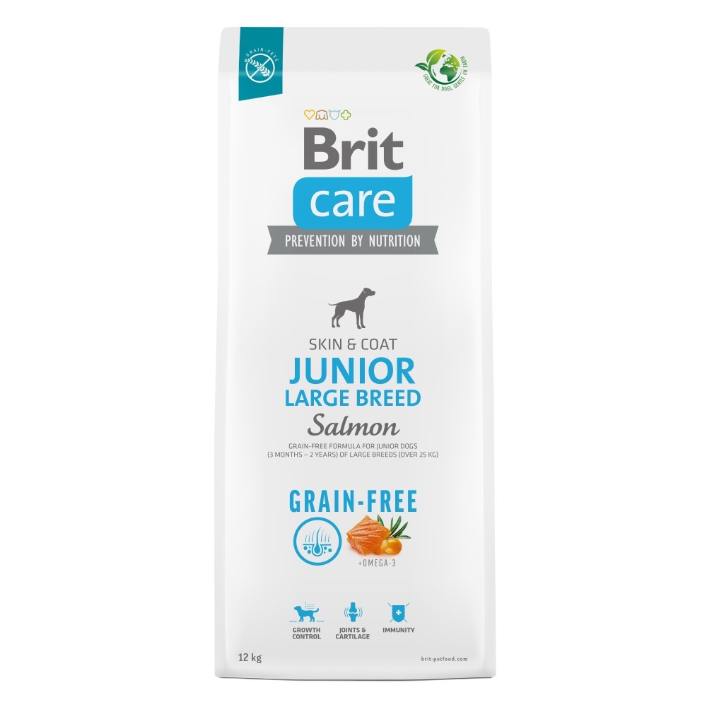 Kompletní krmivo pro psy. Bezobilná receptura losos a brambory pro mladé psy (3 měsíce – 2 roky) velkých plemen (nad 25 kg).