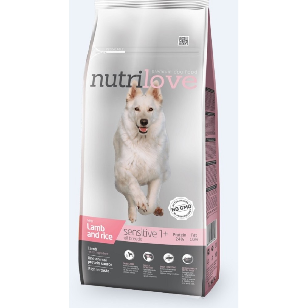 Kompletní krmivo pro dospělé psy všech plemen s citlivým trávením s příchutí jehněčího a rýží.