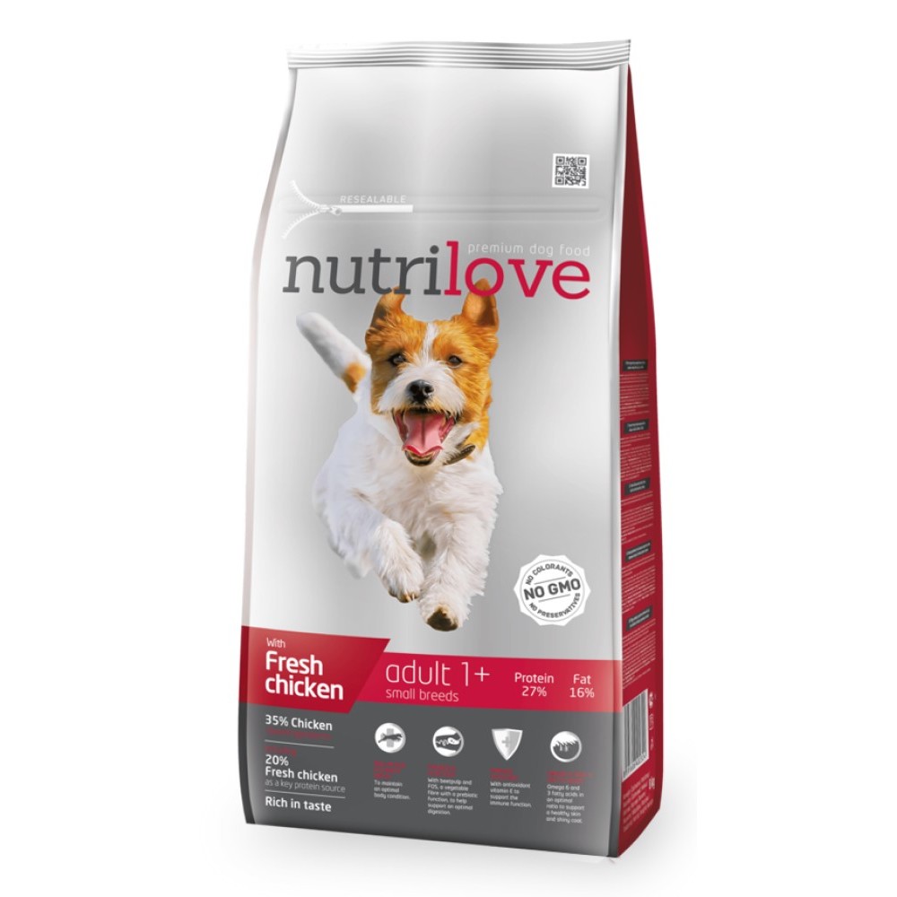 Kompletní krmivo pro dospělé psy malých plemen s čerstvým kuřecím a rýží.