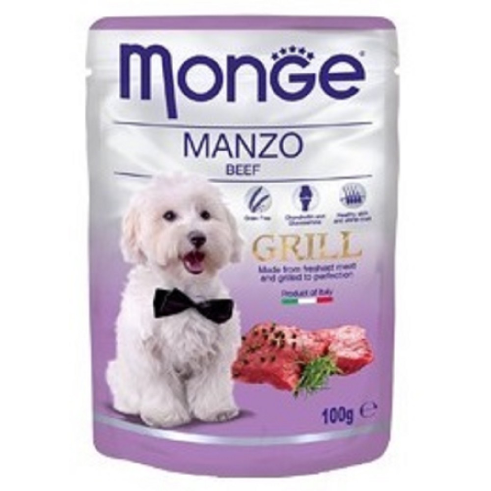 Kompletní krmivo pro psy. Superprémiová kapsička z čerstvého masa na grilu.