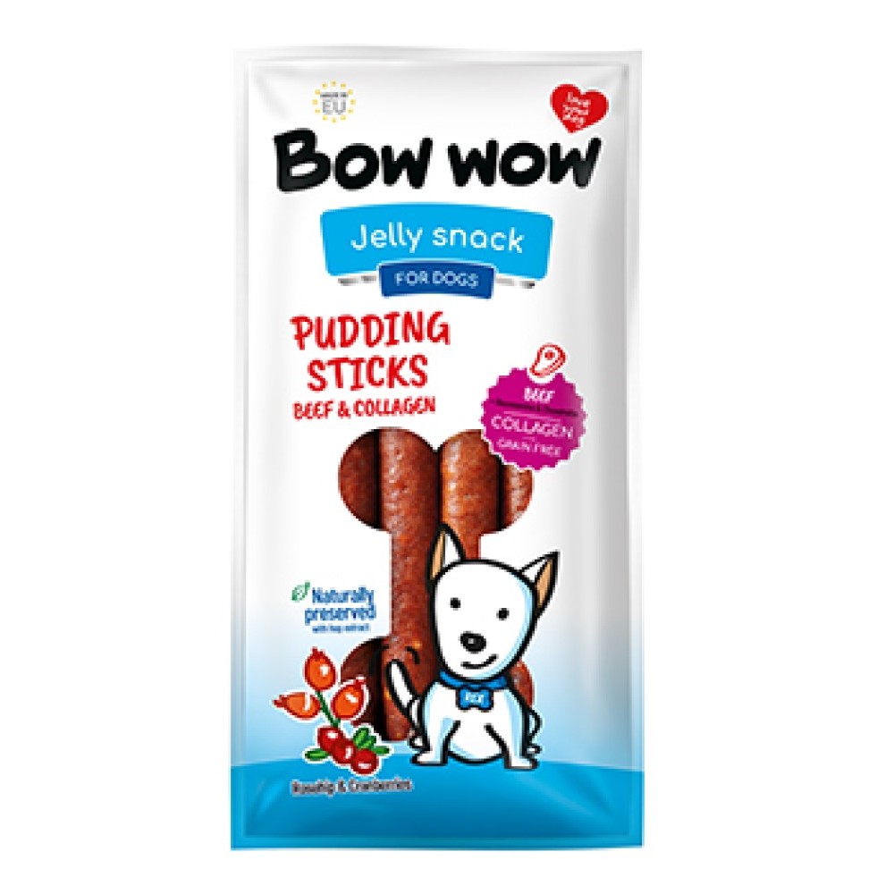 Bow Wow Jelly snack Pudding sticks (s hovězím, kolagenem, šípkem a brusinkami) 6ks/bal.