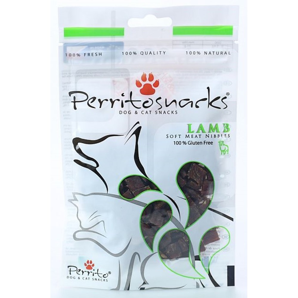 Doplňkové krmivo pro psy, nebo kočky. Trhané jehněčí kousky.