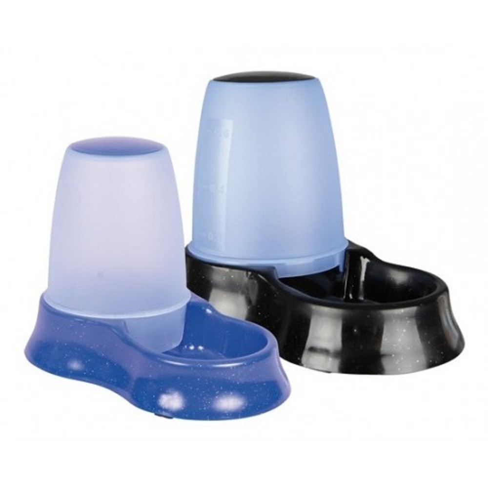 Plastový zásobník na krmení a vodu pro psy malých plemen a pro kočky.