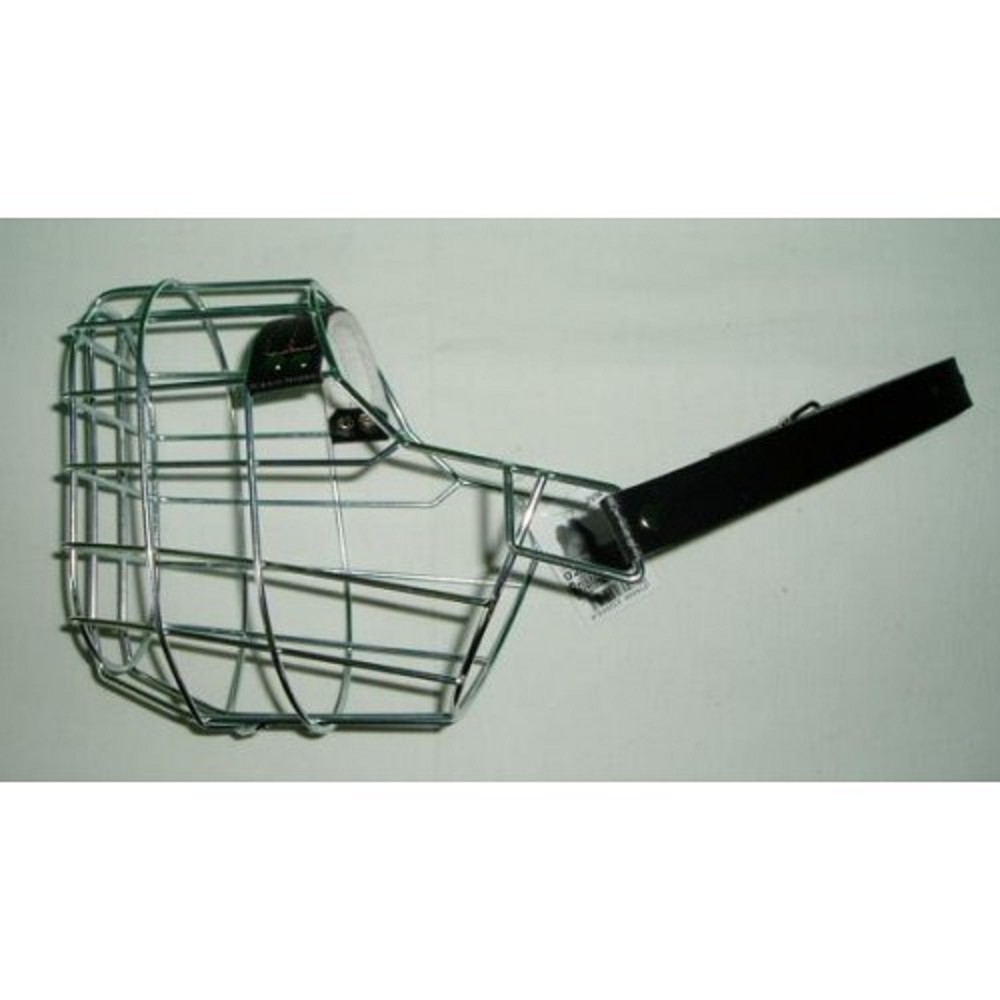 Kovový náhubek s koženými řemínky na zapínání pro fenu amerického kokra.