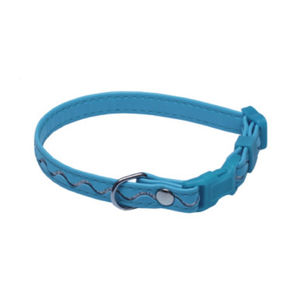 Obojek koženka 1,2×20-35cm stříbrné vlnky – modrý AKCE
