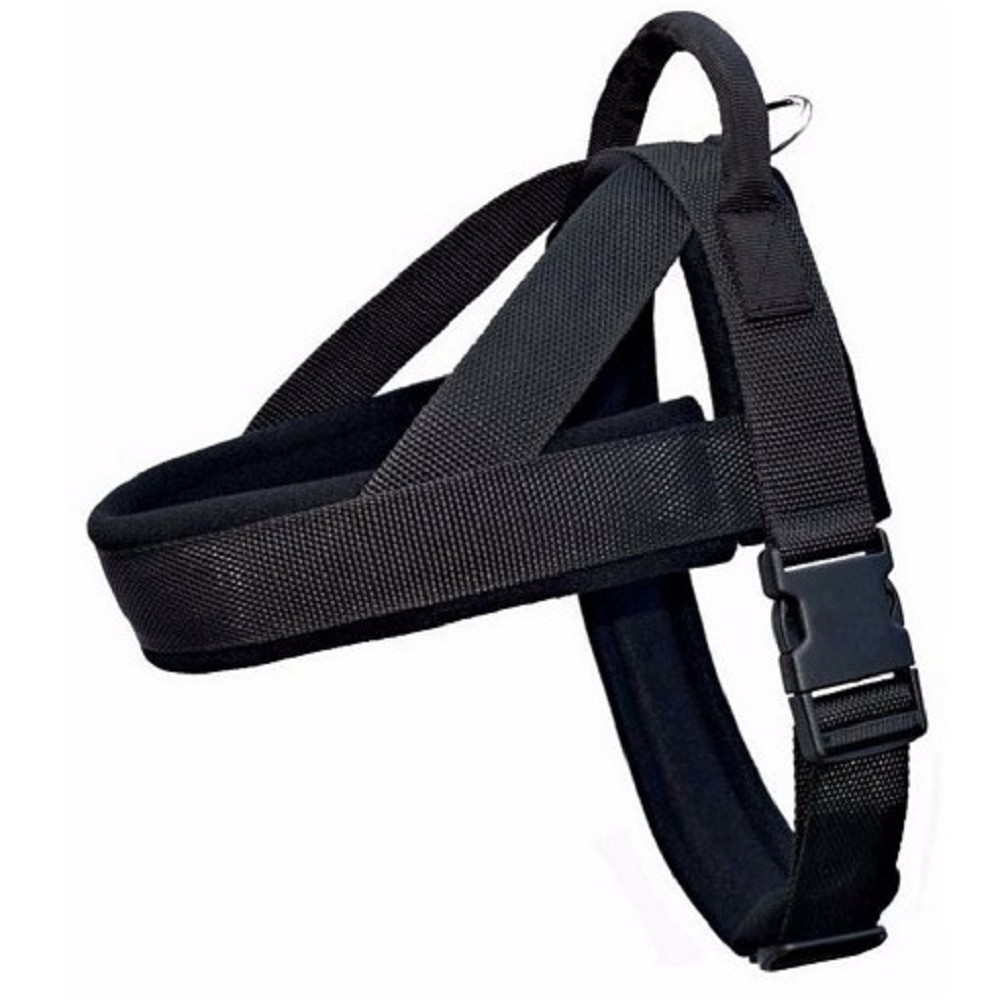Popruhový, podšitý, obranářský postroj s úchytem pro psy středních plemen.