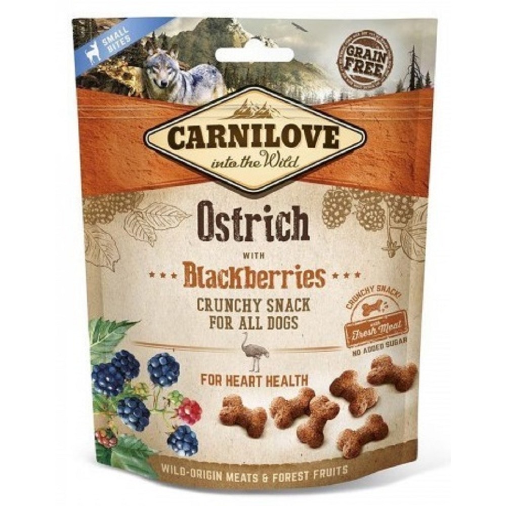 Lahodný křupavý pamlsek vhodný pro všechny psy s pštrosím masem a ostružinami pro zdravé srdce.