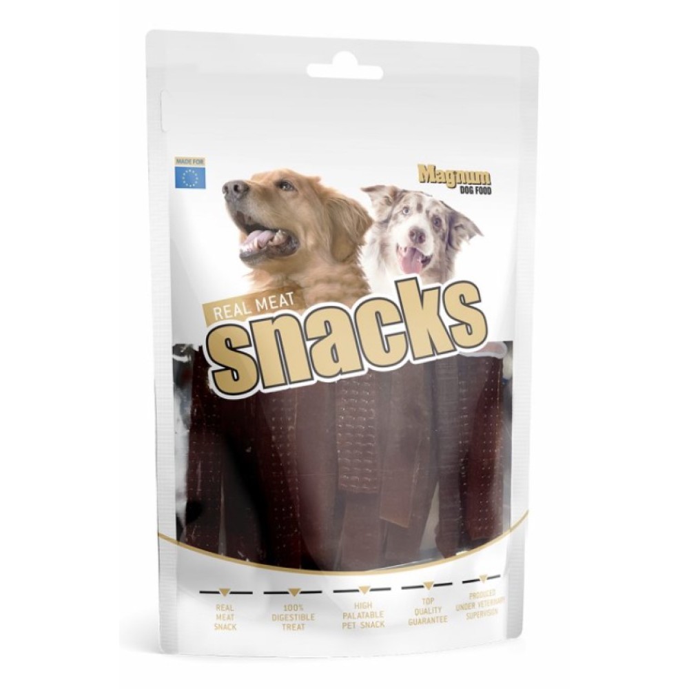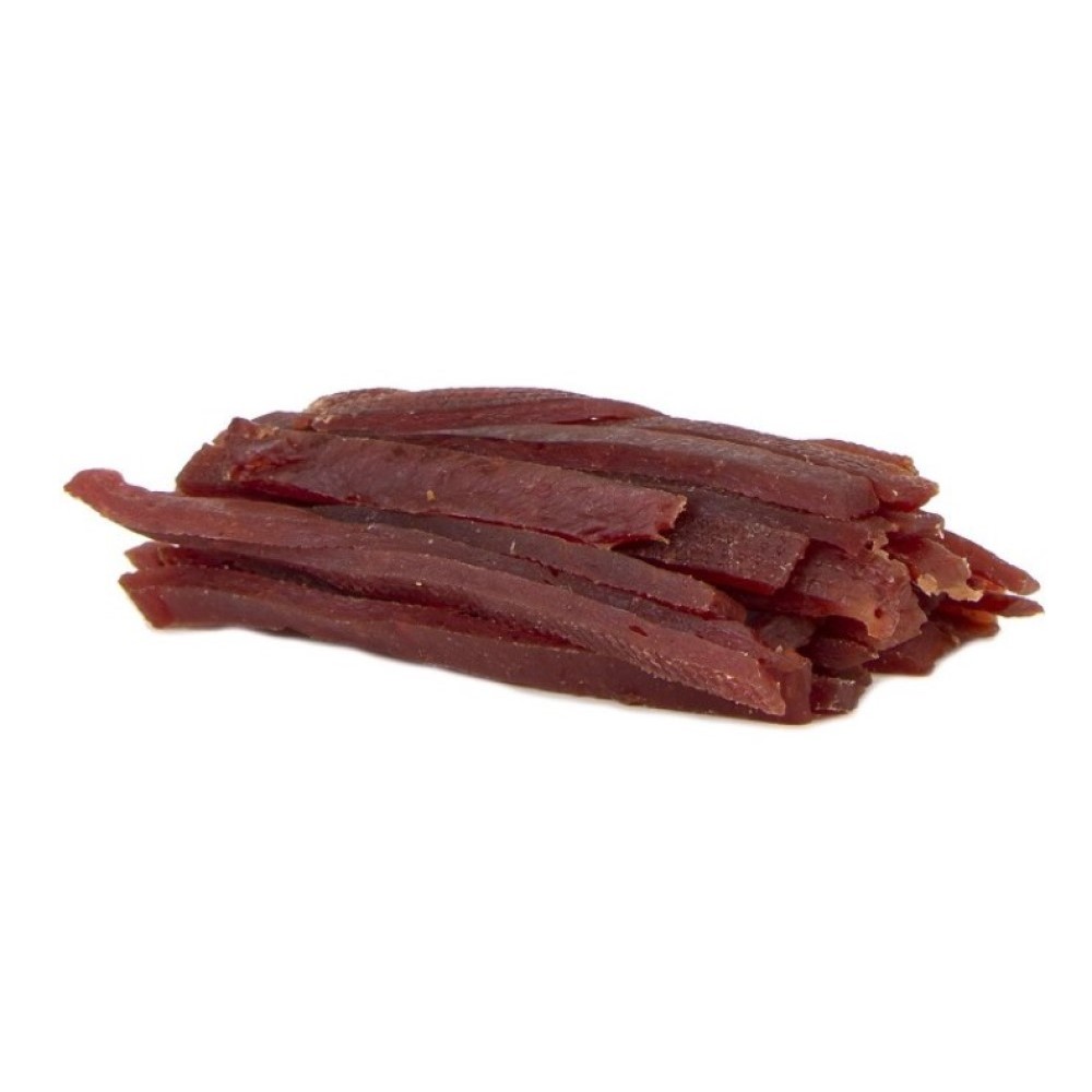 Měkká, přírodní masová pochoutka z kachní svaloviny formovaná do proužků.