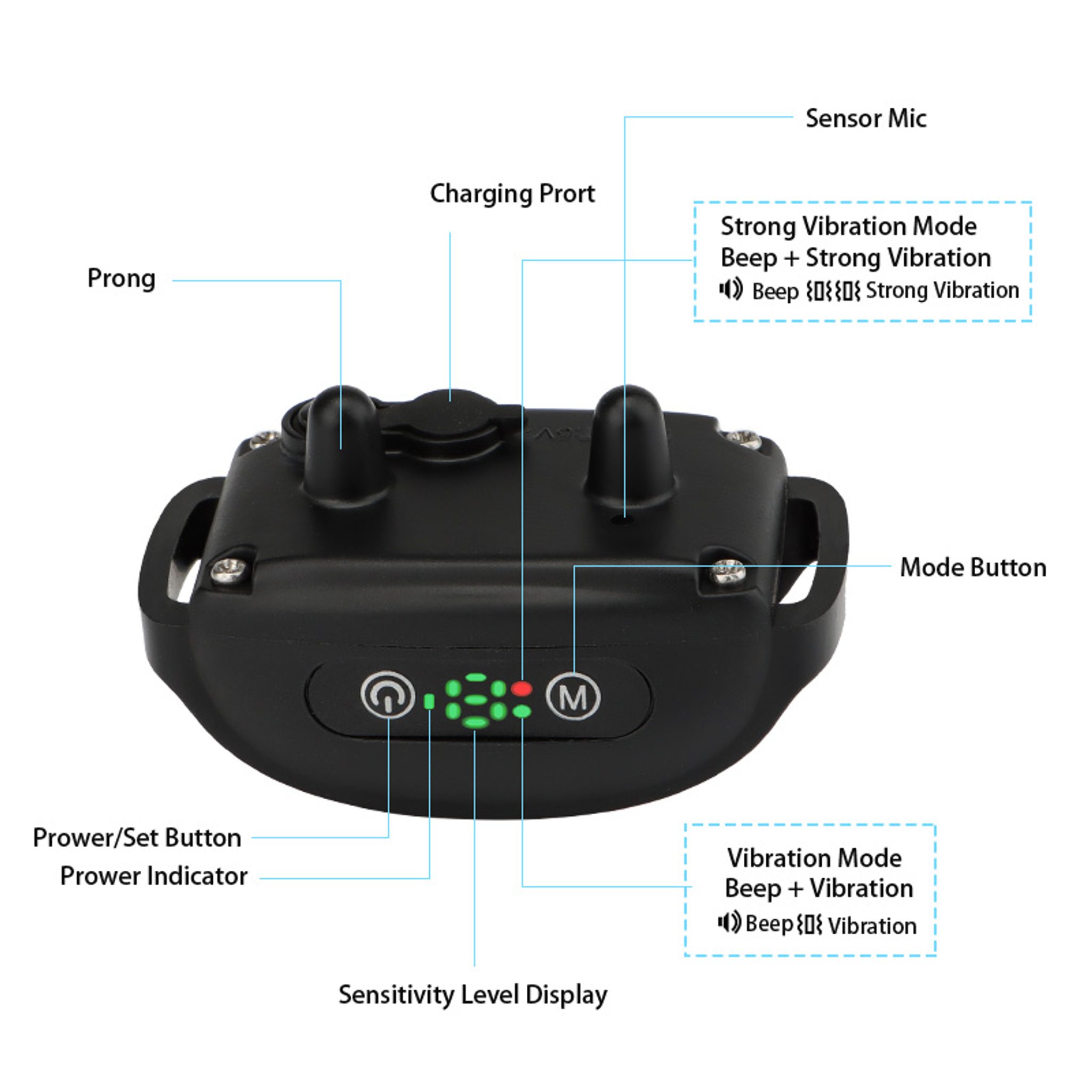 Moderní protištěkací obojek Reedog V2 je moderní pomůckou pro odnaučení nežádoucího štěkotu vašeho psa. Obojek využívá pro korekci štěkání funkce zvuku a krátkou a dlouhou vibraci – citlivost na štěkot lze nastavit v pěti úrovních. Nabíjení pomocí USB kabelu, voděodolný materiál a malý inteligentní barevný displej. Spolehlivý a bezpečný obojek je vhodný pro všechna plemena psů od 5 kg.
