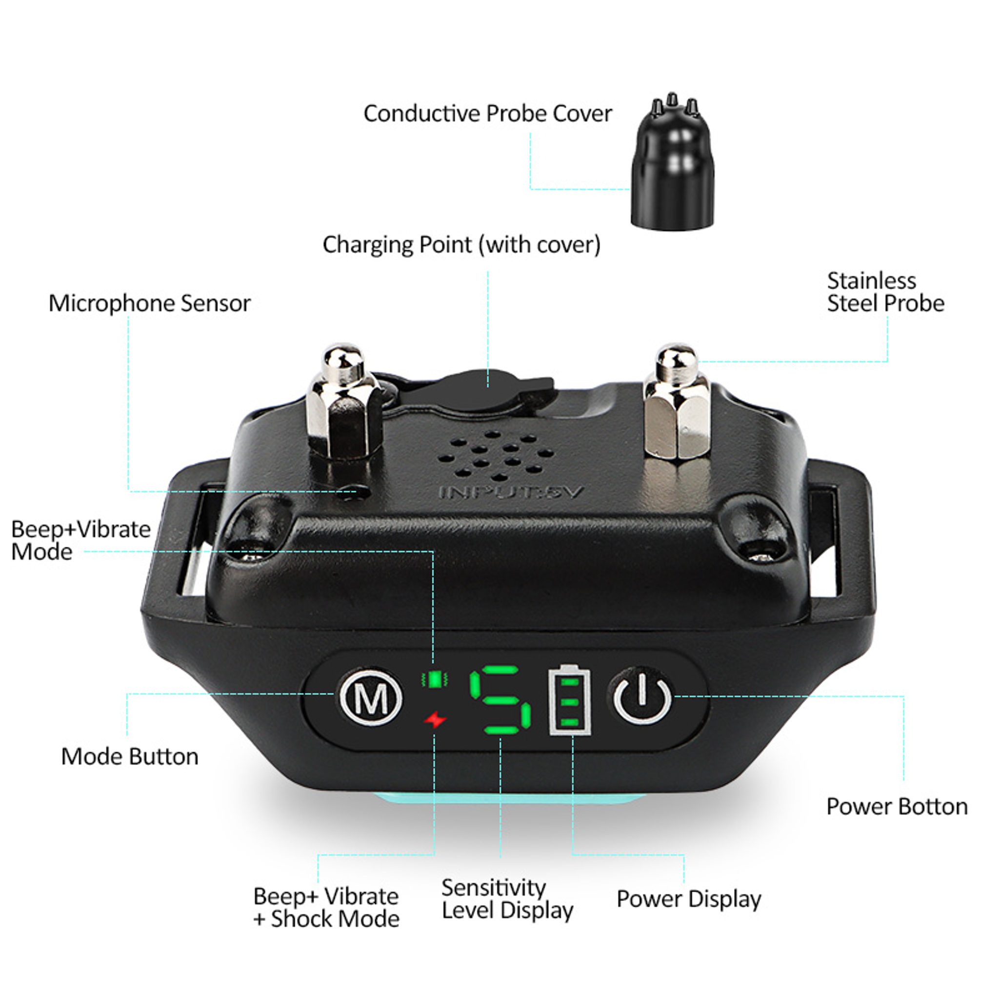 Protištěkací obojek Reedog Q20 disponuje nastavitelnou citlivostí na štěkot v pěti úrovních. Nastavíte-li vysokou citlivost na štěkání, bude obojek korigovat pejska již při tichém štěkání. Určíte si tedy sami, jaká hlasitost štěkání je už přes míru. Štěkání rozpozná pomocí zabudovaného mikrofonu v obojku, který zabraňuje spuštění zařízení štěkáním nebo hlukem jiných psů.