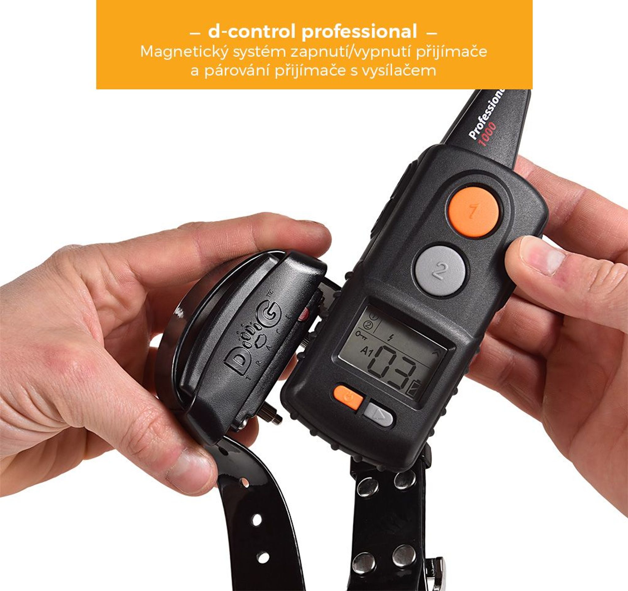 D-Control Professional 2000 je model se série pro profesionální výcvik psů, je zpracován jako vysoce odolné zařízení, které vyhoví i podmínkám náročného terénu. Je odolný proti nárazu, vodě ( déšť,sníh) a výcvik je možný až na vzdálenost 2000 m. Díky dosahu vám obojek bude dobře fungovat i v členitém nebo zalesněném terénu, kde se obvyklé dosah výcvikových obojků vlivem prostředí zkracuje. Obojek korekce vibrace ve 4 úrovních, 2 stupně zvukových signálů a elektrostatický impulz ve 40 úrovních , kde vám umožní zvolit vyhovující intenzitu pro vašeho pejska přesně, vzhledem k jeho temperamentu a velikosti. Na přijímači lze navíc aktivovat 8 světelných módů, která zviditelní vašeho pejska po tmě. Přijímač psa se díky průhledné krabičce rozsvítí podle režimu, který nastavíte. Pokud cvičíte 2 psy zároveň, můžete pro každého nastavit odlišný režim, abyste je rozlišili. Pohotovou manipulaci umožní také zapnutí či vypnutí zařízení pomocí magnetu, kdy stačí vysílačku přiložit k přijímači v příslušném kontaktním místě a obojek se automaticky zapne/vypne. Vysílačka má kompaktní tvar se snadno hmatatelnými tlačítky, které navíc umožňují si pod vybranými tlačítky nahrát vlastní režim. Funkce si tedy můžete naprogramovat na míru, jak Vám vyhovuje. D-Control Professional 2000 disponuje i vysokou výdrží baterie 6 až 12 měsíců, stav baterie signalizuje světelná kontrolka.