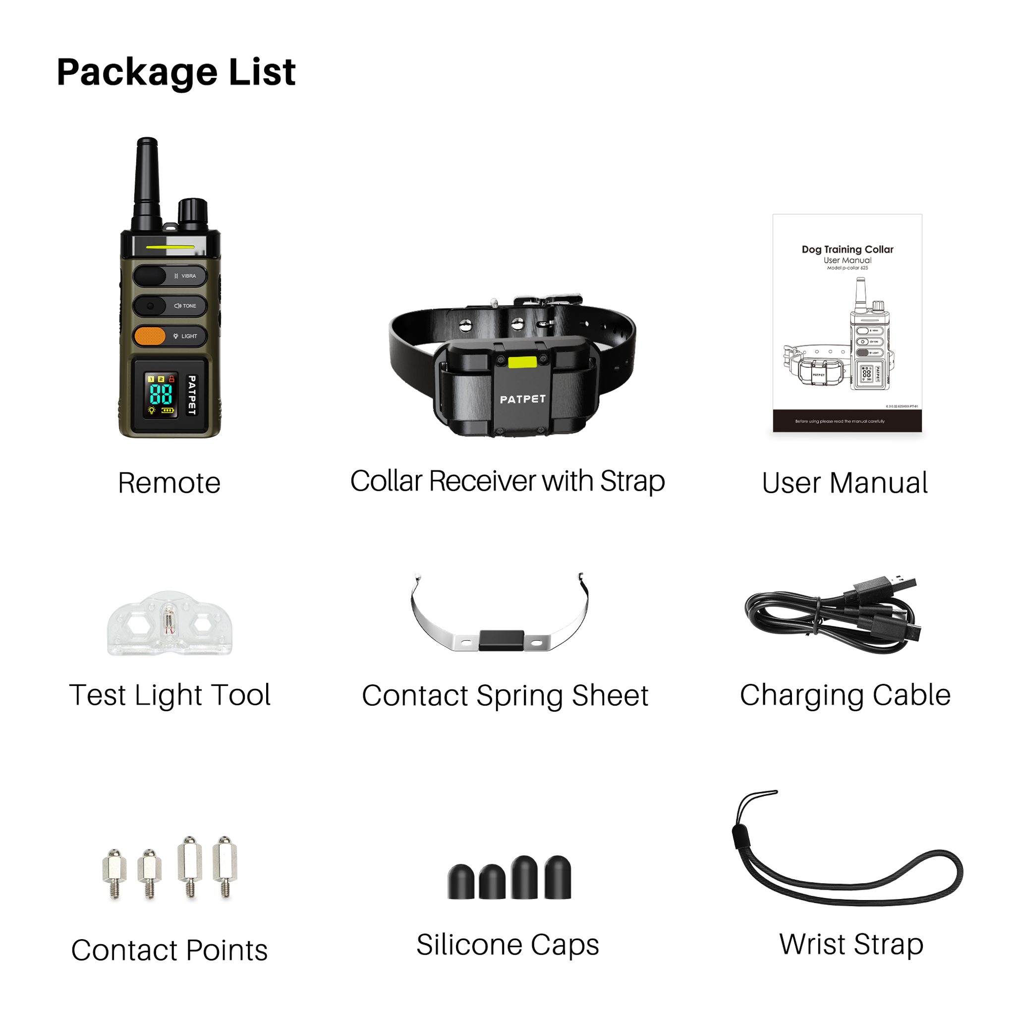 Výcvikový obojek Patpet 625 vám usnadní výcvik vašeho psa – nabízí dosah až 1600 metrů, 3 výcvikové režimy (zvuk, vibrace, statická stimulace) a nastavitelnou intenzitu 0–100. Rychlé 2,5 hodinové nabíjení, možnost ovládat až 2 psy jedním ovladačem a bezpečnostní uzamčení stimulace dělají trénink efektivním a pohodlným pro vás i vašeho psa.